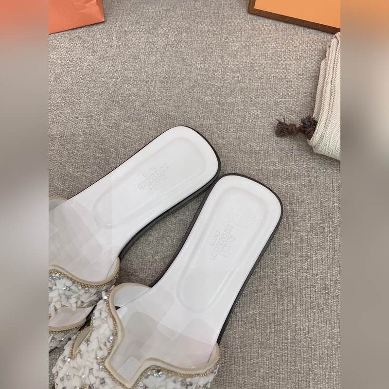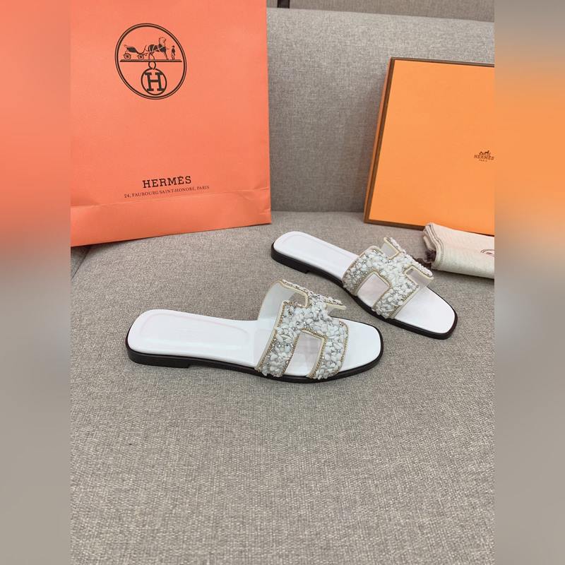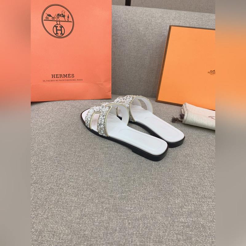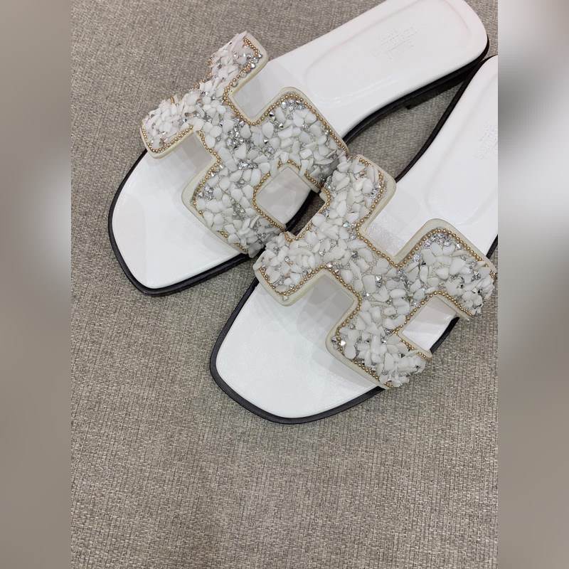 HERMES Classic H szandál Prémium minőségű báránybőr felső gyöngy dekor