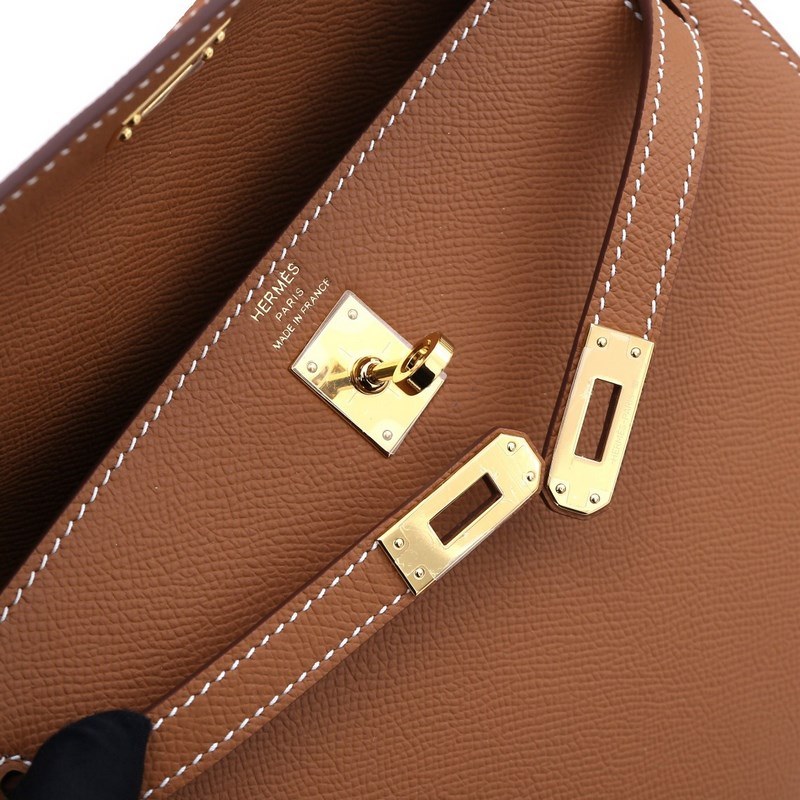Hermes Kelly Tote válltáska aranybarna arany és ezüst csattal