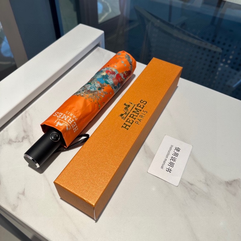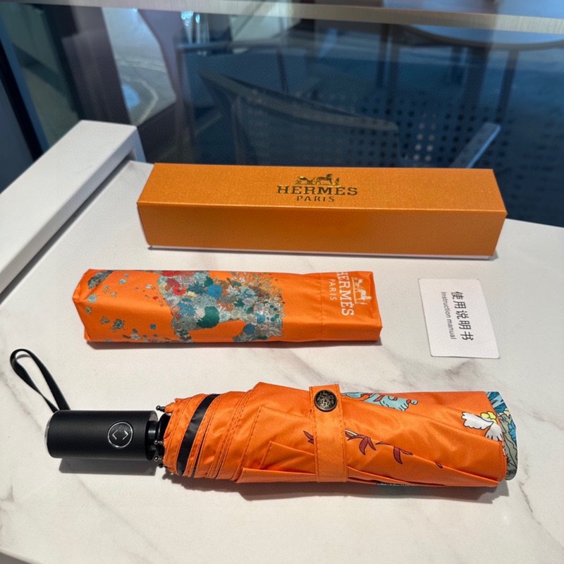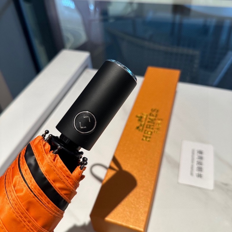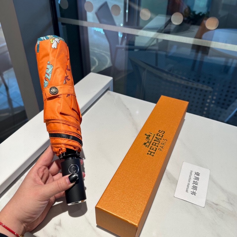 Hermès (Hermès) A végső H-család háromrészes automata esernyőjét kitűnő kivitelezéssel és végtelen képzelőerővel mutatják be. Az új bevonattechnológiás esernyőkendő meglepő árnyékoló hatást hoz, így a napvédelem és a hőszigetelő teljesítmény jobban garantált. A bordák minősége meghatározza az esernyő minőségét. Az esernyőváz anyaga ötvözött esernyőrúdból és szénszálas bordákból készül, amelyek nagyon strapabíróak. A 210T impakt textil napvédő és vízlepergető technológia első generációja blokkolja a közvetlenül az esernyő felületét érő ultraibolya sugarak 99%-át, így kiküszöböli a nyári leégést. Frissítő utazás Még esős napokon is élvezheti a legelegánsabb sétát