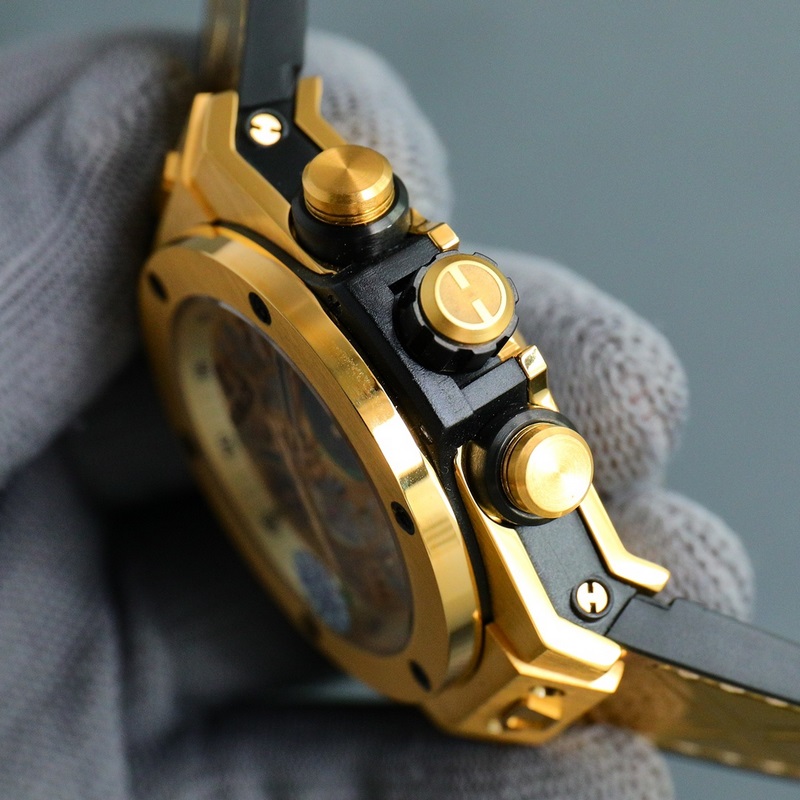 Hublot HUBLOT – Rettenthetetlen és bátor, keményen ütő, “HUB” néven emlegetett, Big Bang Element Material Chronograph v2 verzió A ház importált 316-os rozsdamentes acél anyagból készült robbanékony kialakítású 7750 módosított “HUB1242” automata mozgással. A kronográf azonnali indítása és az egykulcsos visszarepülés automatikus funkciója az eredeti tömeg növelése érdekében stabilabb utazási idő és ultraalacsony javítási ráta A szíj természetes tölgy gumi szíjból készült, amely szuper vízálló, puha és kényelmes A tükör természetes zafír üvegből készült, amely kopás- és karcálló, átlátszó és hibátlan Fiatal márkaként a Hublot újrafesti a fiatalos vitalitást a rikító gyártási szabadsággal és egyedi dizájnnal.