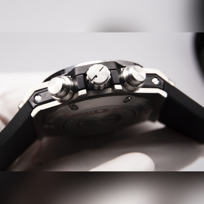 Férfi karóra 316 rozsdamentes acél tok A ház CNC technológiával finoman polírozott, hogy minden irányban részleteket biztosítson. Az előlap kiemeli a Hublot egyedi csiszolt kivitelezését. A szíj import gumiszíjat és felső rétegű borjúbőrt használ.