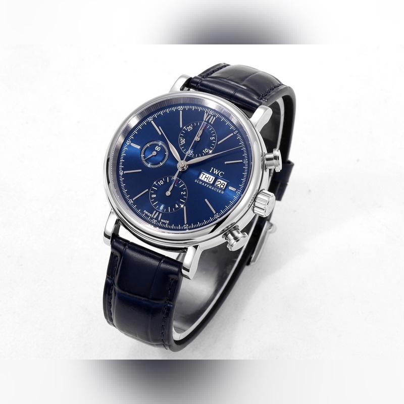 Az IWC Portofino kronográf mérete 42mmX13,5mm. Az eredetivel tökéletesen szinkronban a tok rozsdamentes acélból készült, és gondos polírozás után finom csillogást ad. A fülek természetes görbülettel rendelkeznek, és tökéletesen illeszkednek a házba, sima vonalakkal és ragyogó csillogással. Az órát egy Shanghai 7750 módosított 4601 automata mechanikus szerkezettel látták el, amely minden funkciót megvalósít az eredetinek megfelelően, zárt fenékkialakítással, az aljára gravírozott évfordulós logóval és olasz borjúbőrrel, tűcsattal. Könnyen hordható, kézben tartható hatása kiváló.