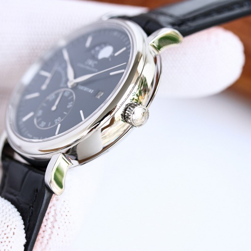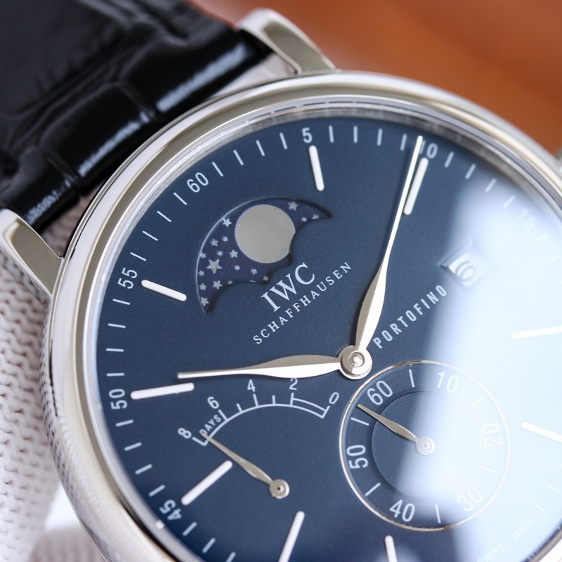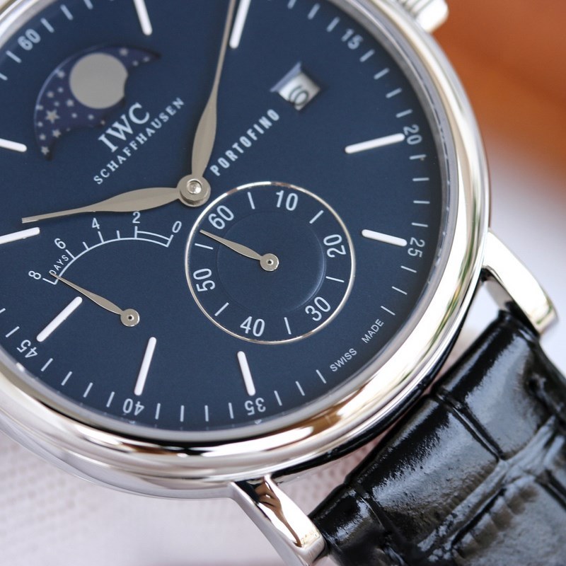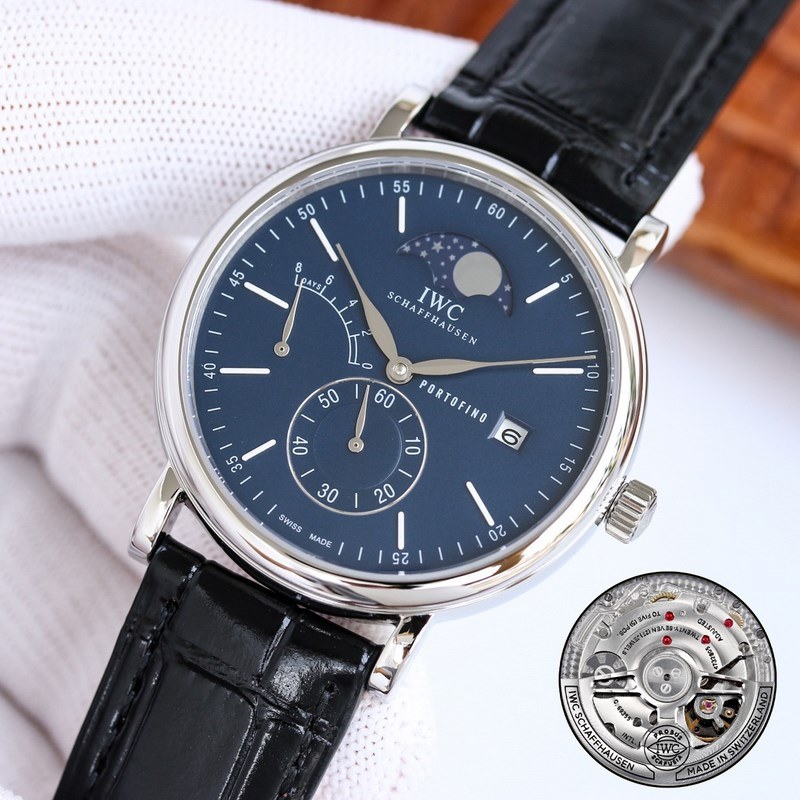 Case 316L rozsdamentes acél ház, polírozott és nagyon kerek. A kis másodpercmutatós számlap 6 órakor található stop-second funkcióval, tömör rúdszögskálával és római számokkal felszerelve, 9 órára kinetikus energia dekoráció kerül, 3 órára pedig PORTOFINO (angolul Portofino) és pontos távolságnaptár ablak van írva, ami szimmetrikus az ív alakú kinetikus energia díszítéssel. A 12 pozícióhoz illeszkedő holdfázis-pozíció megegyezik az eredetivel. Észrevehetjük, hogy ennek az órának a naptárablaka a számlap szélén található, és a naptár betűtípusa megegyezik az eredetivel. A fűzfa alakú mutatók órákat, illetve perceket jeleznek, a kétoldalas tükröződésmentes íves zafír bevonatú tükörszíj pedig olasz borjúbőrből készült. A mozgást önállóan fejlesztették ki egy automatikus tekercselő mechanikus mozgással, amely stabil és pontos. A legkáprázatosabb átlátszó óra az IWC alatt. Mindenféle üzleti alkalomra alkalmas, egyszerű és kifinomult az elegancia elvesztése nélkül. Üdvözlünk minden óra barátot, hogy értékelje.