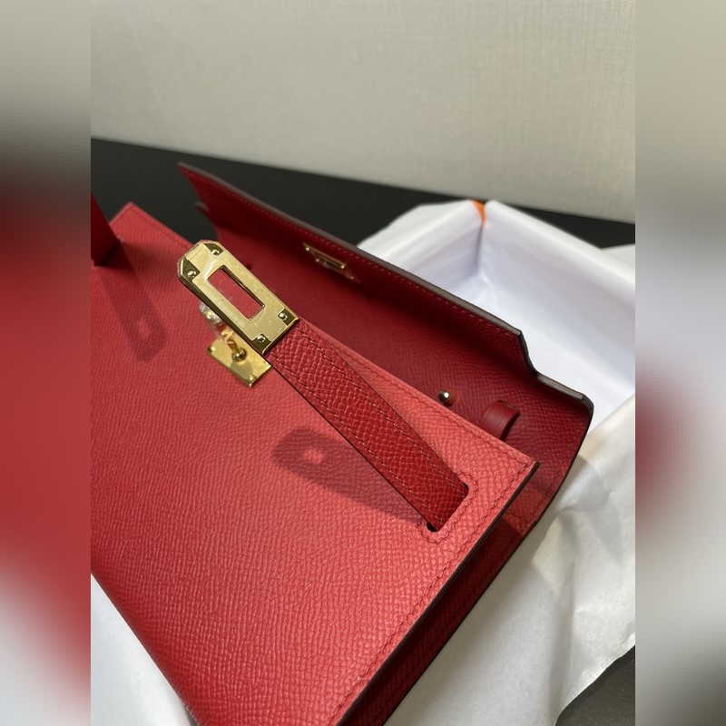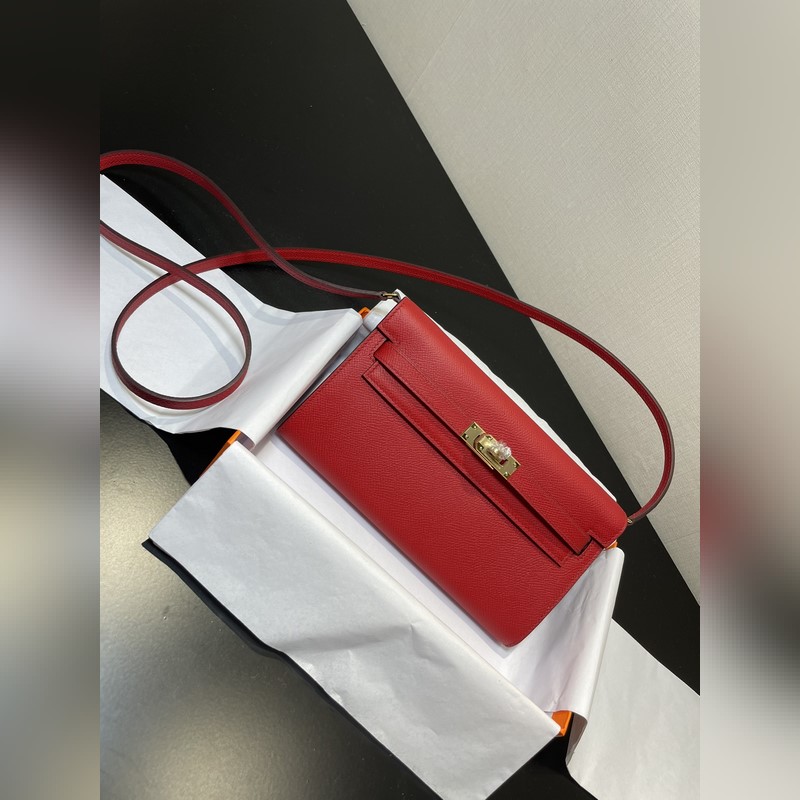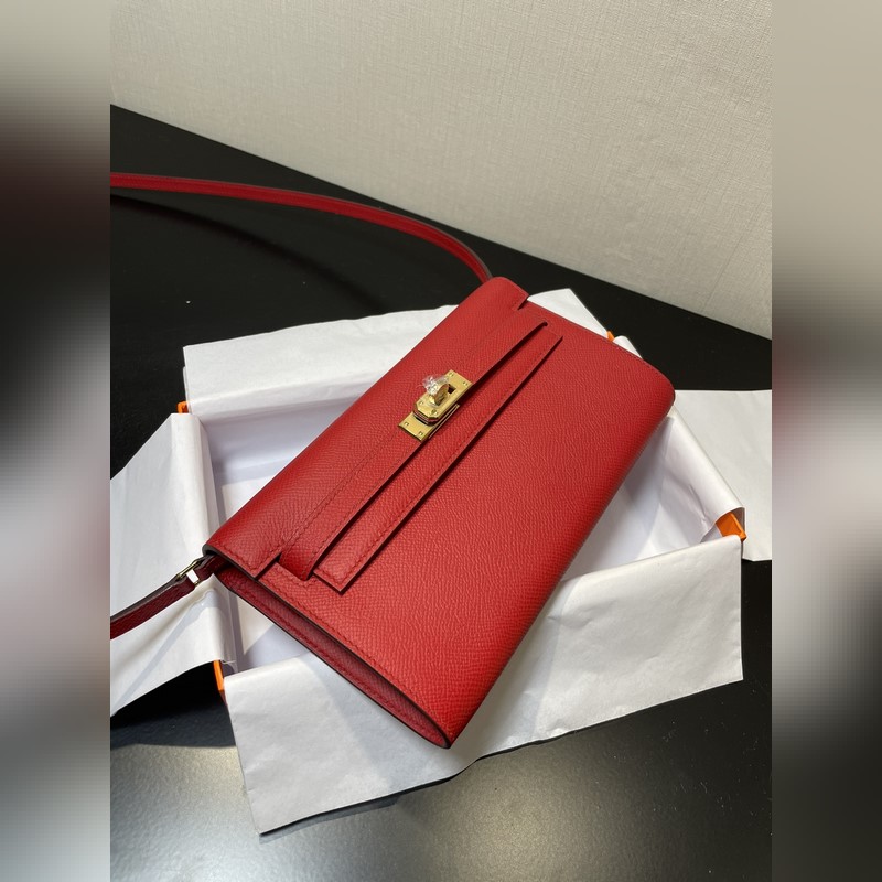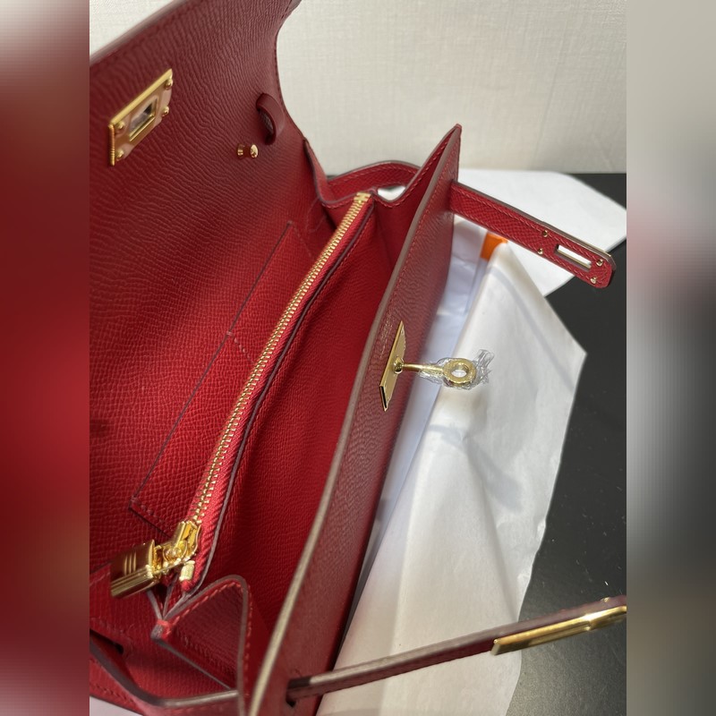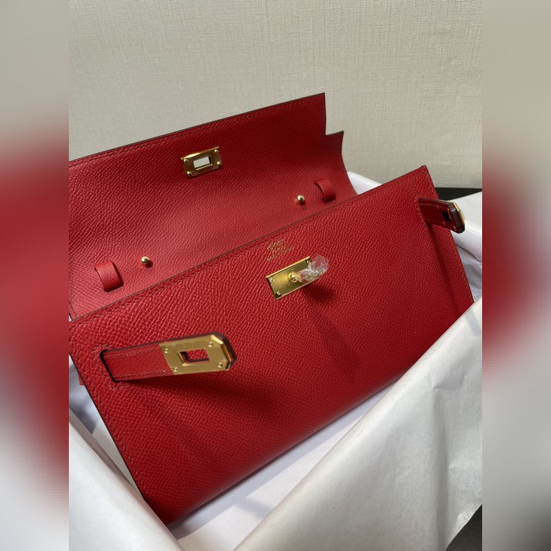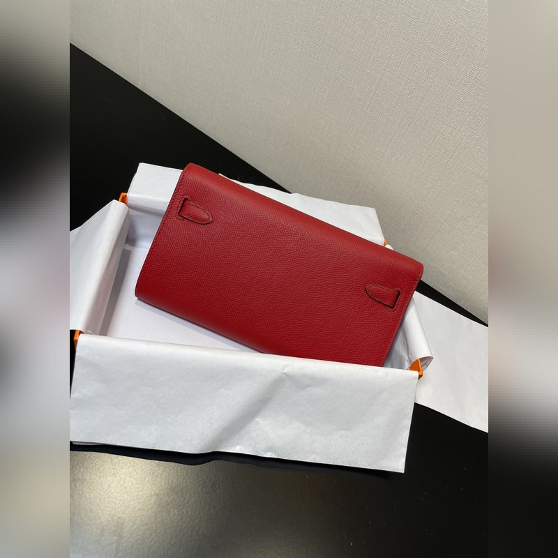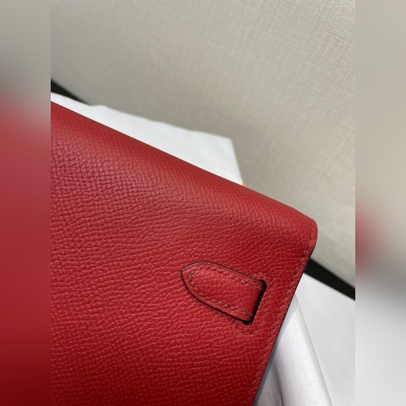 Kelly woc akciós modell, mindenkinek kell, praktikus, többcélú, részletek kép, élénkpiros színű, bőr epsom, raktáron (méret: hossz 20,5 x szélesség 11 x vastagság 2 cm)