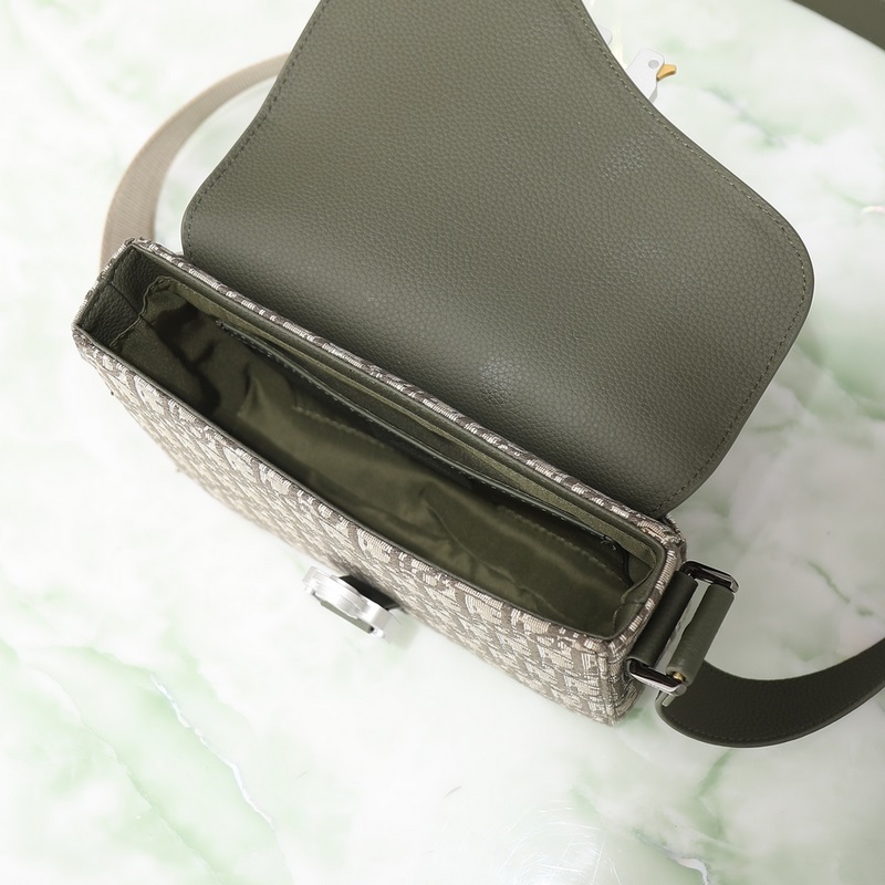 Ez a kis Saddle futártáska füles kialakítással rendelkezik az elegáns és kifinomult megjelenés érdekében. Khaki Oblique mintás szövetből készült, ugyanabban a tónusban szemcsézett borjúbőrből készült nyeregszárny, és alumínium csattal van kiegészítve. A tágas belső térben egy hátsó zseb található a mindennapi szükségletek számára. Az állítható bőrnek és Christian Dior jacquard vállpántnak köszönhetően vállon vagy a testen át is hordható.