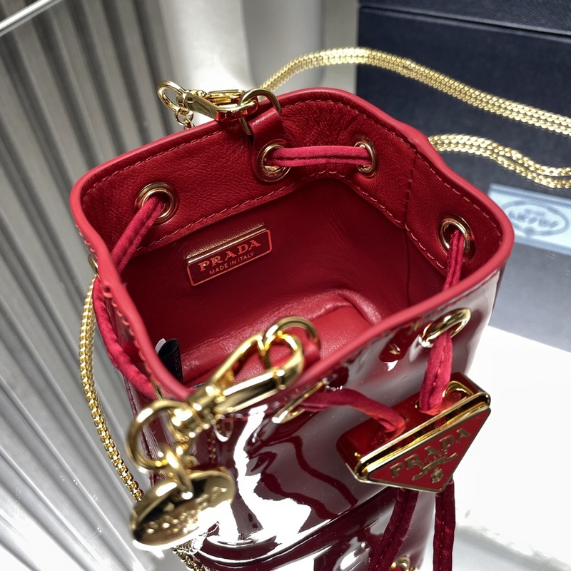 Csúcsminőségű eredeti lakkbőr kis vödör 1NR016 borjúbőr Ez a lakkbőr kis vödör importált fényes marhabőrből és zománcozott fém háromszög logóval díszített nyitó- és záródizájnt használ. A fémlánc keresztben hordható. Annyira aranyos, a hatás nagyon szemet gyönyörködtető, tündéri vagy menő, ne érzed magad kísértésbe, gyönyörű lányok. Siess és szerezd meg. Nagyon szép és aranyos Méret: hossza 9,5x magasság 9x alsó 6 cm