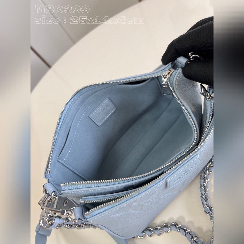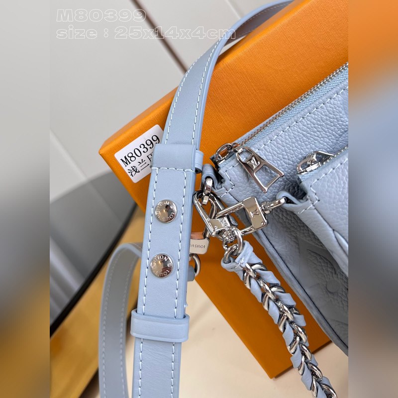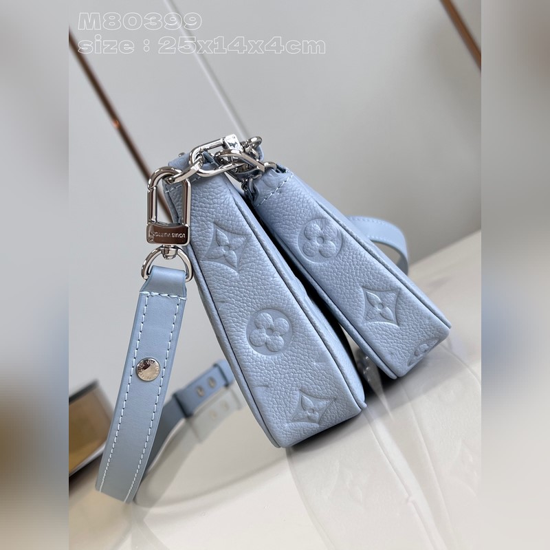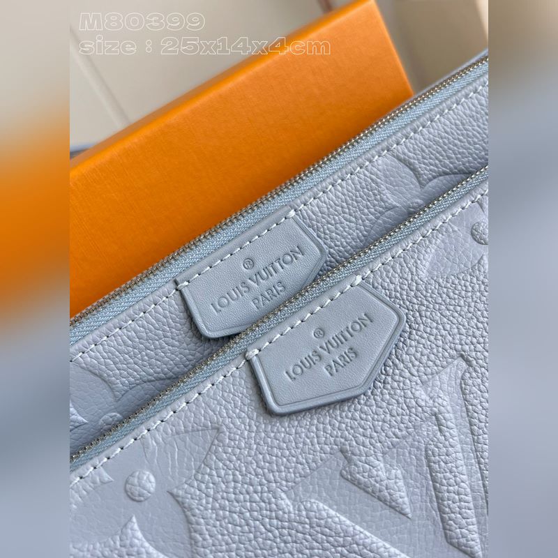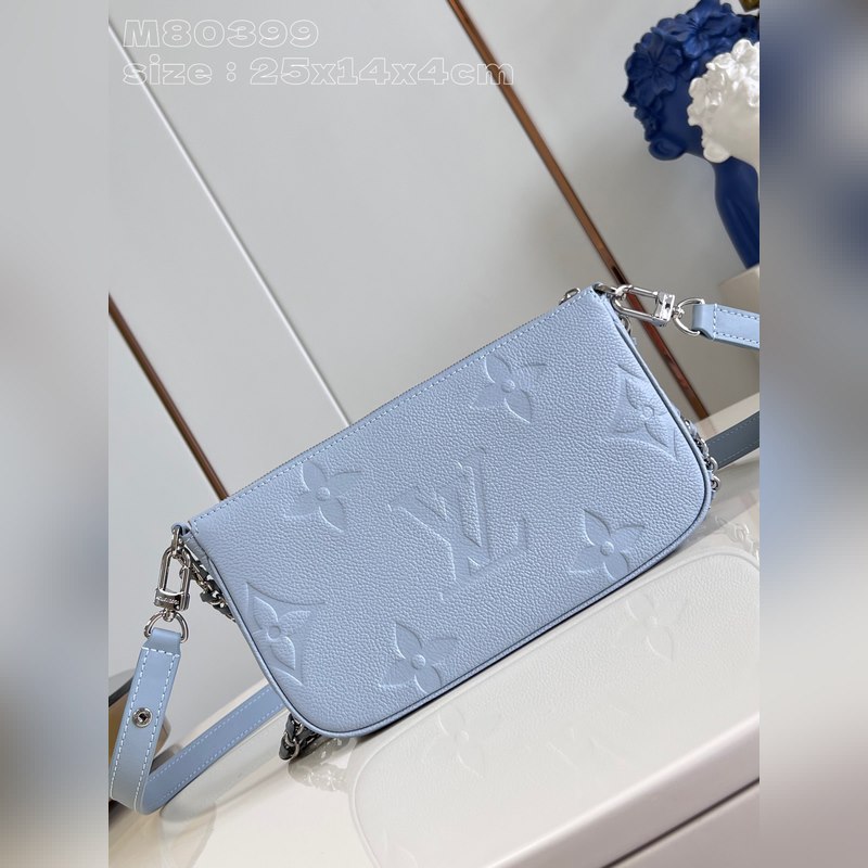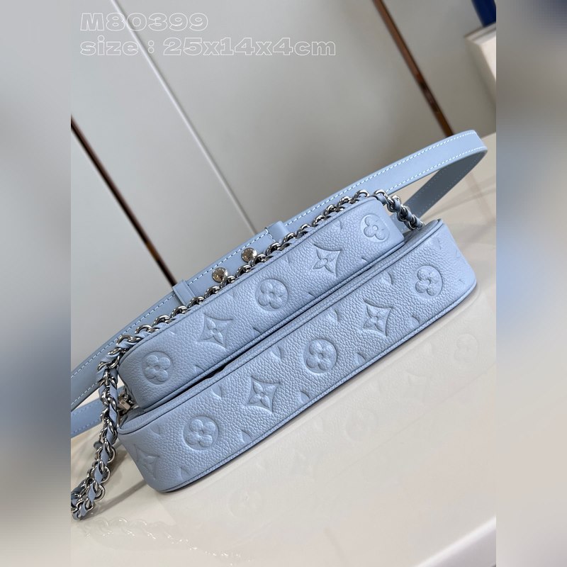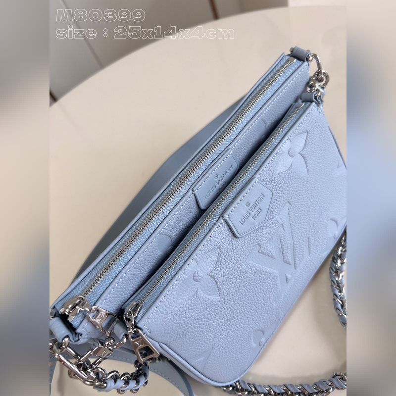 Top eredeti otthoni real shot M80399 világoskék dombornyomott Ez a Multi ochette Accessoires kézitáska Monogram Emreinte bőrből készült, mikroszálas béléssel. A nagyméretű, kettő az egyben kivitelű kuplungtáska belső zsebbel van felszerelve, a levehető lánc és vállpánt pedig kényelmesen és rugalmasan hordozható. Részletes jellemzők 25 x 14,5 x 4,5 cm (hossz x magasság x szélesség)