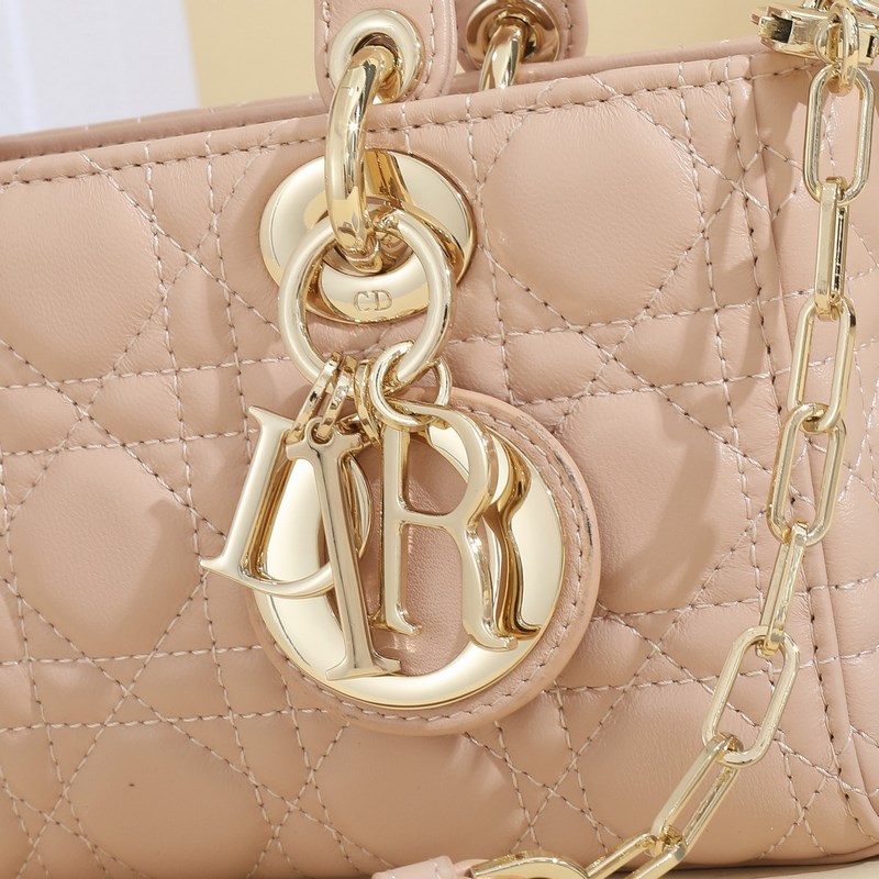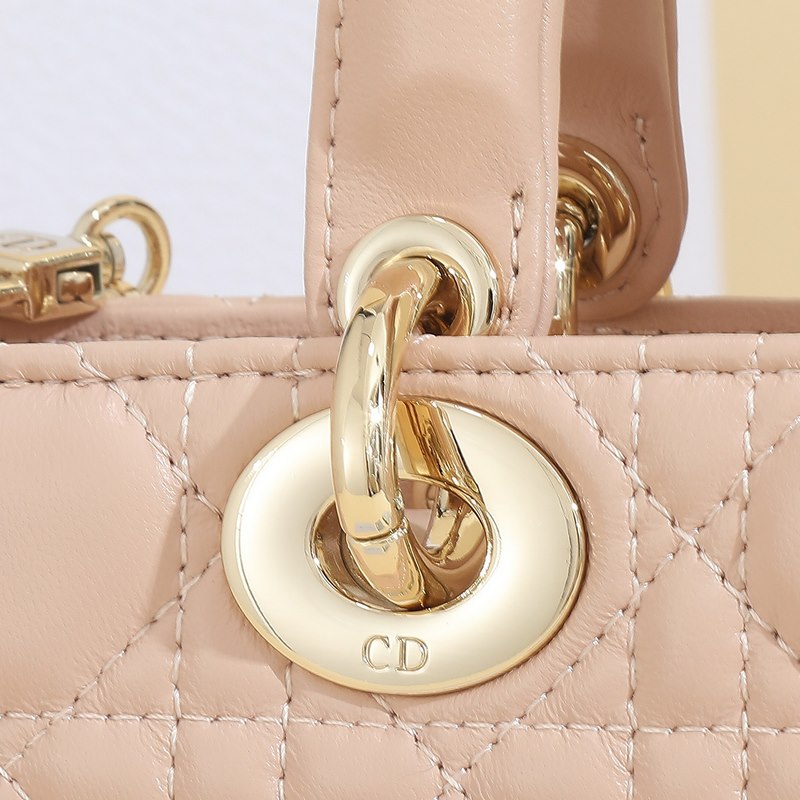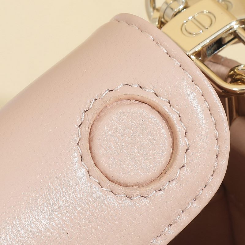 Ez a Lady D-Joy kézitáska kiemeli a Lady Dior kollekció minimalista esztétikáját, megtestesítve a Dior mély betekintést az eleganciába és a szépségbe. Rózsaszín báránybőrből készült, cannage varrással díszített és világos aranyozott fém d.i.o. r. varázsa, amely kiemeli a stílust, és egy csipetnyi mozgékonyságot ad a gyönyörű sziluetthez. A kis modell levehető láncos vállpánttal és állítható és levehető bőr vállpánttal van felszerelve. Kézben, vállon vagy keresztben hordható, így ideális választás a mindennapi megjelenéshez.