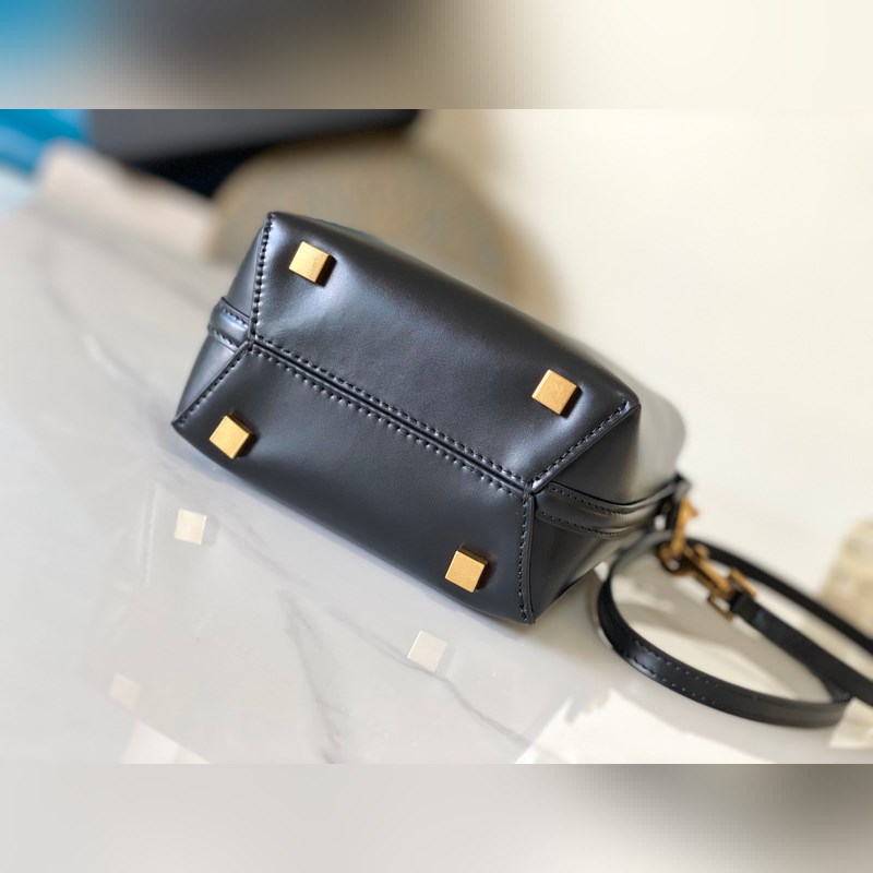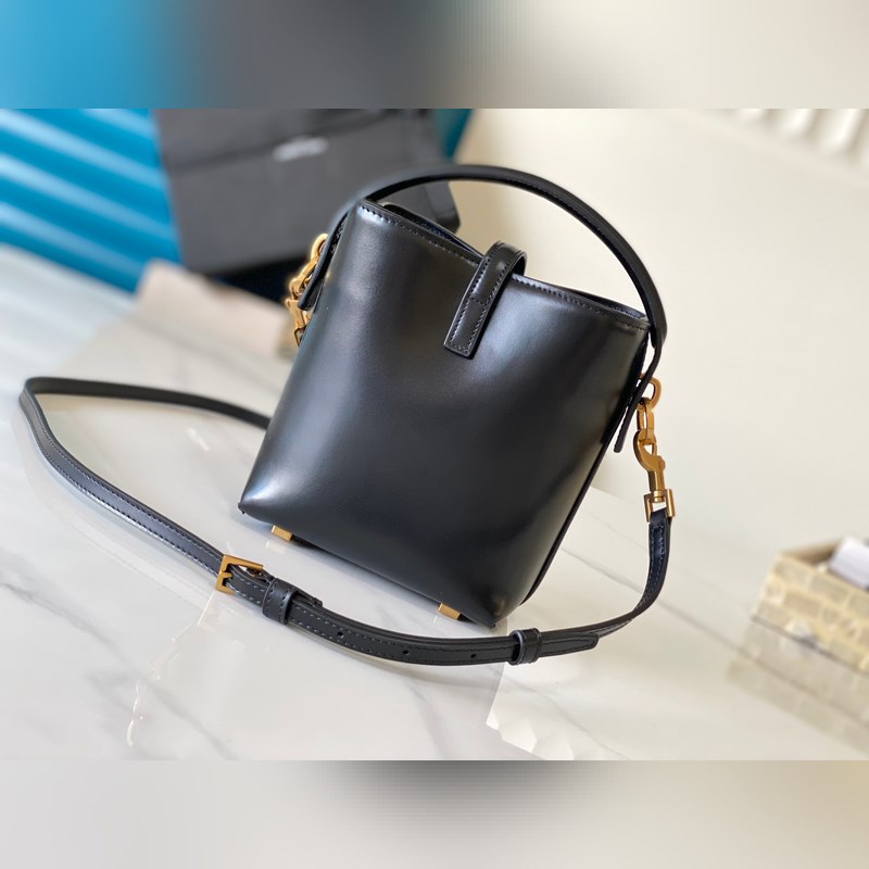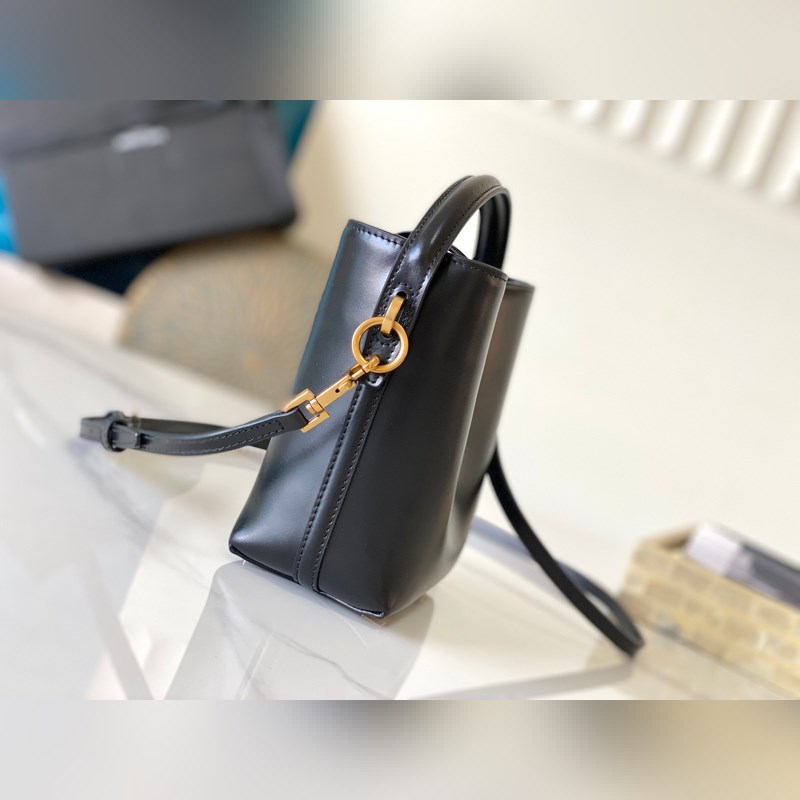 LE 37_Mini Bucket Bag A divatkörben nagyon népszerű vödörtáska egyszerű és háromdimenziós sima marhabőr testtel rendelkezik, amely merevnek tűnik, de nem túl éles. A márka ikonikus logójával ellátott, újonnan tervezett betétcsattal az általános kialakítás egyedi temperamentumot kölcsönöz az embereknek, amely egyszerre klasszikus és elegáns, valamint nagyon divatos és modern.