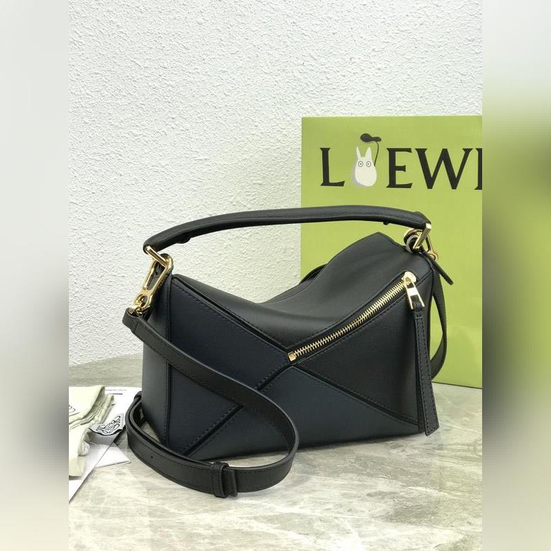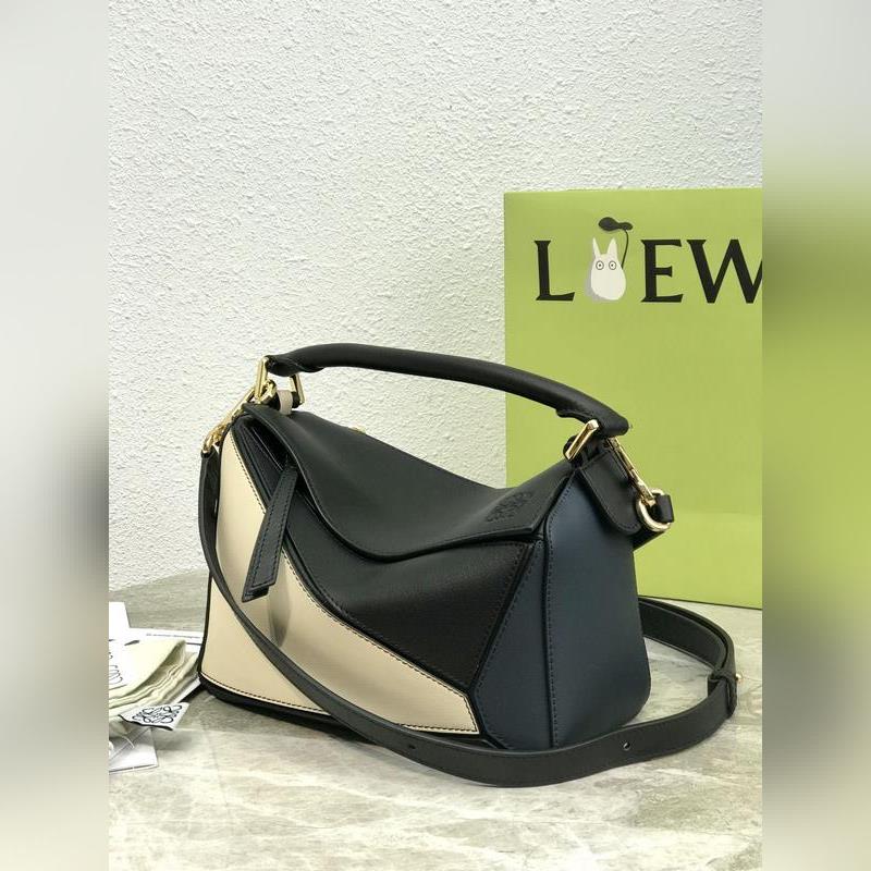 Loewe puzzle geometrikus kialakítású válltáska fekete/sötétkék