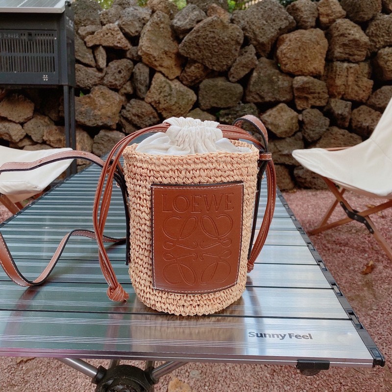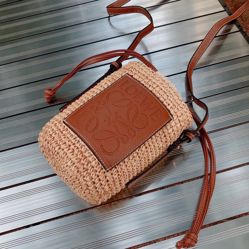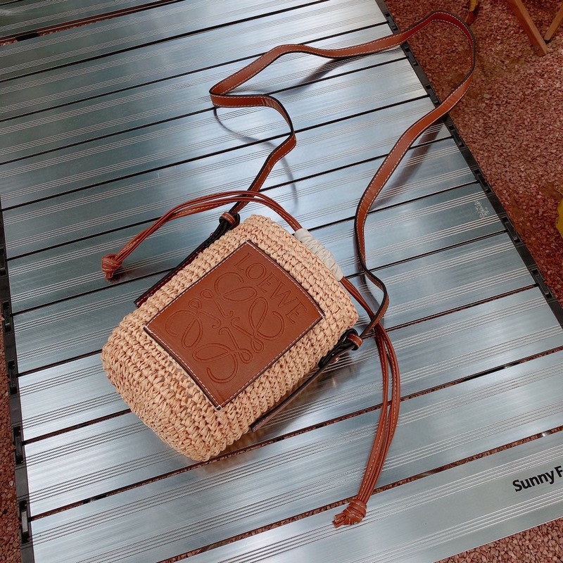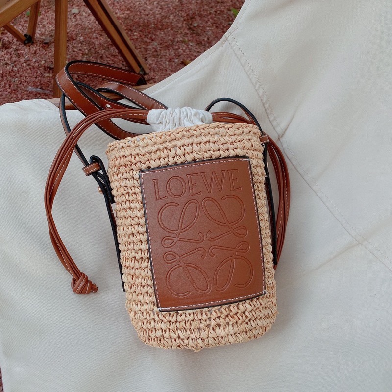 LOEWE szalmazsák vizes palack táska, tiszta rafia táska, nyári stílusú szalmazsák, strand stílusú, magassága 18cm 1cm
