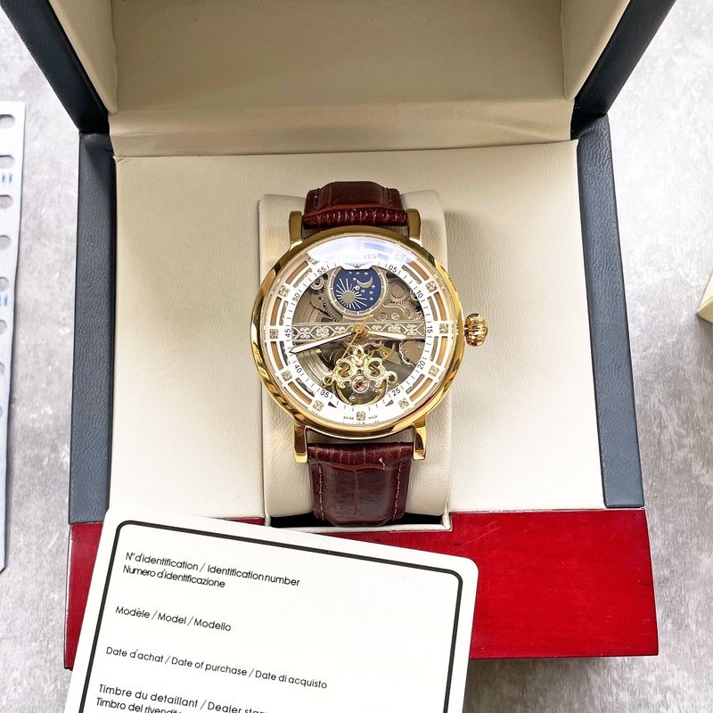 Kiváló kivitelezés, eredetiség, nemes és elegáns, úri stílus. Teljesen automatikus mechanikus mozgást alkalmaz, top 316 rozsdamentes acél ház és szíj, ásványi szupertükör, 43 * 13 mm-es