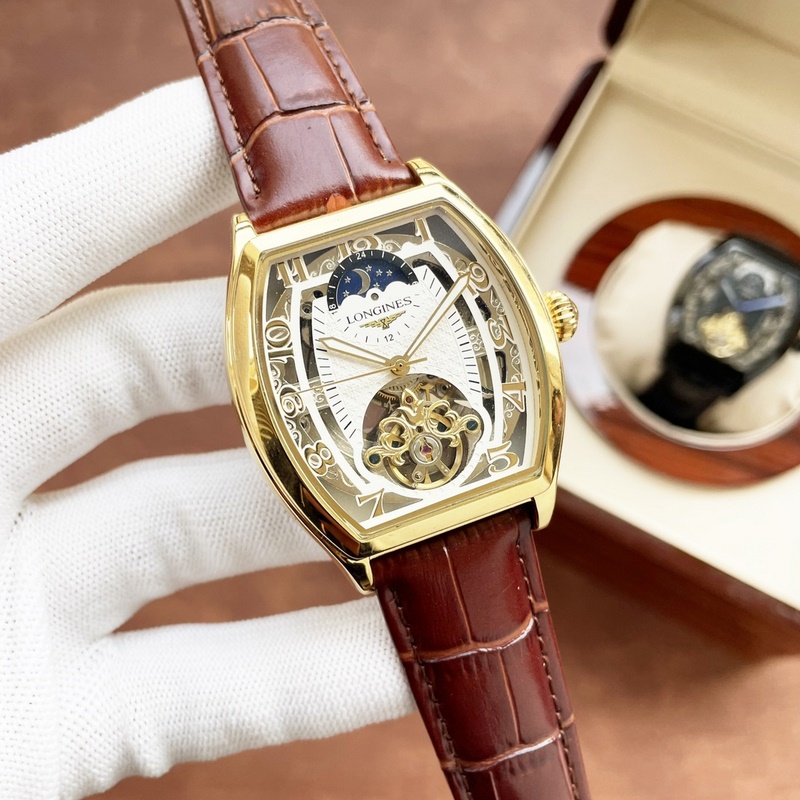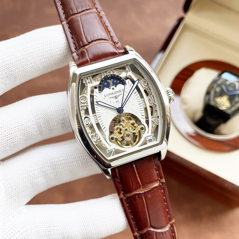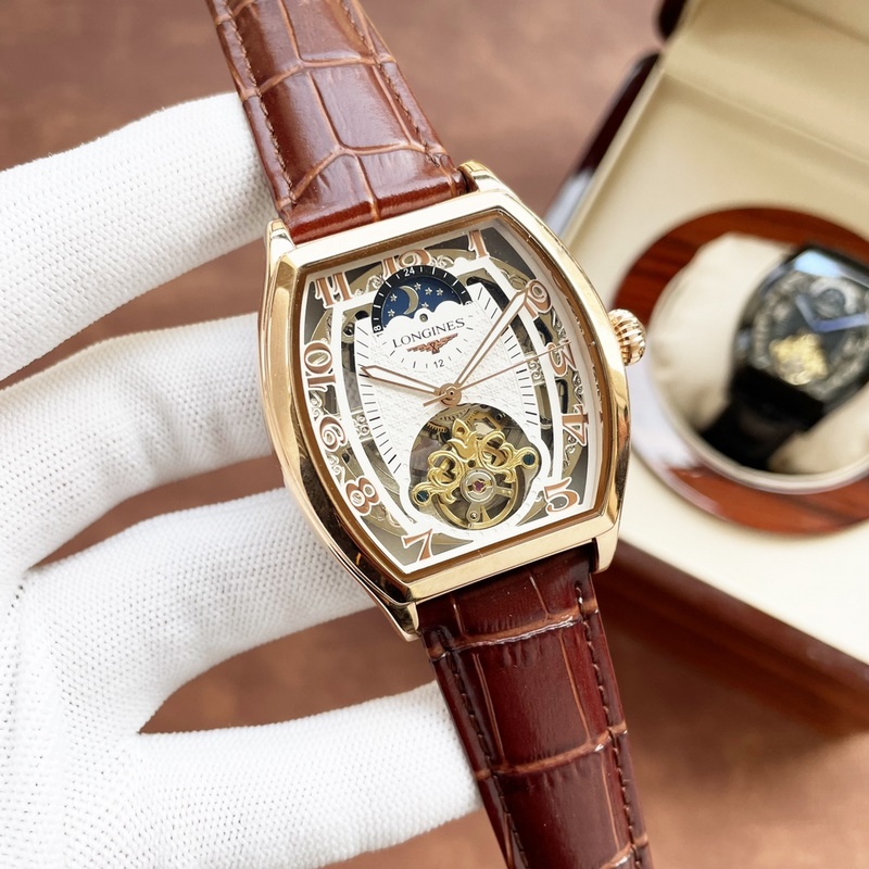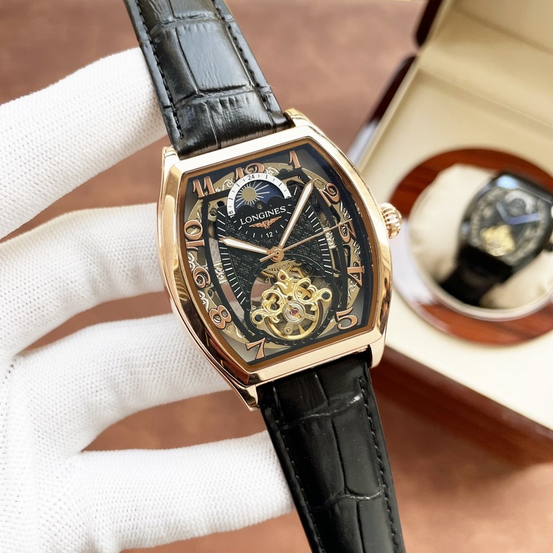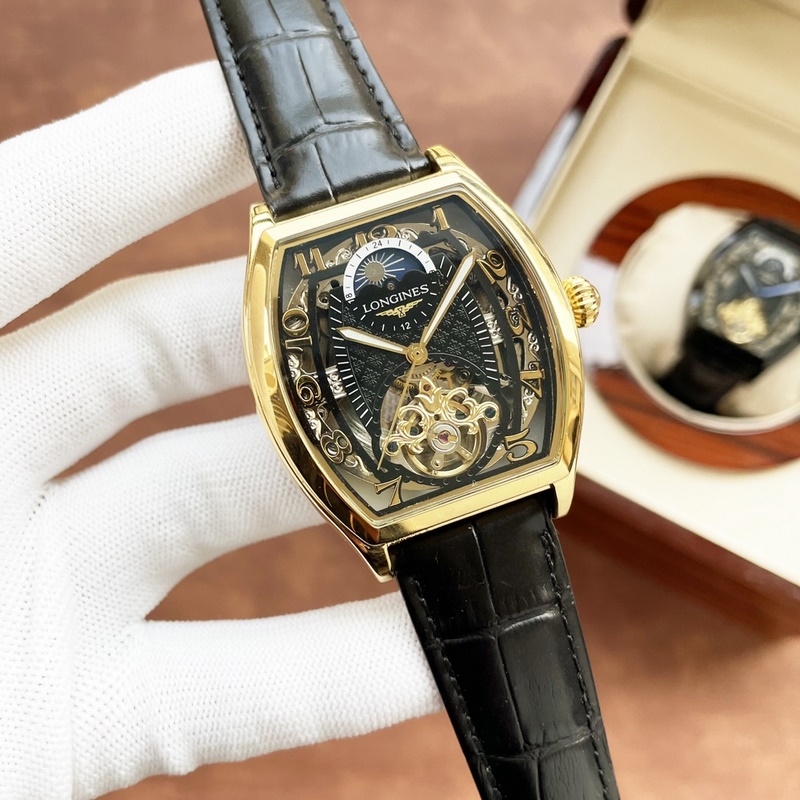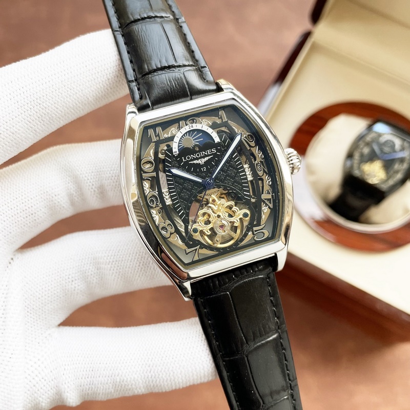 Longines férfi karóra erőteljes üreges dizájnnal, igényes kivitelezéssel, eredetiséggel, nemes hangulattal és úri stílussal. Teljesen automatikus mechanikus mozgást alkalmaz, felső 316-os rozsdamentes acél tok és szíj, ásványi szupertükör, 43*13 méret
