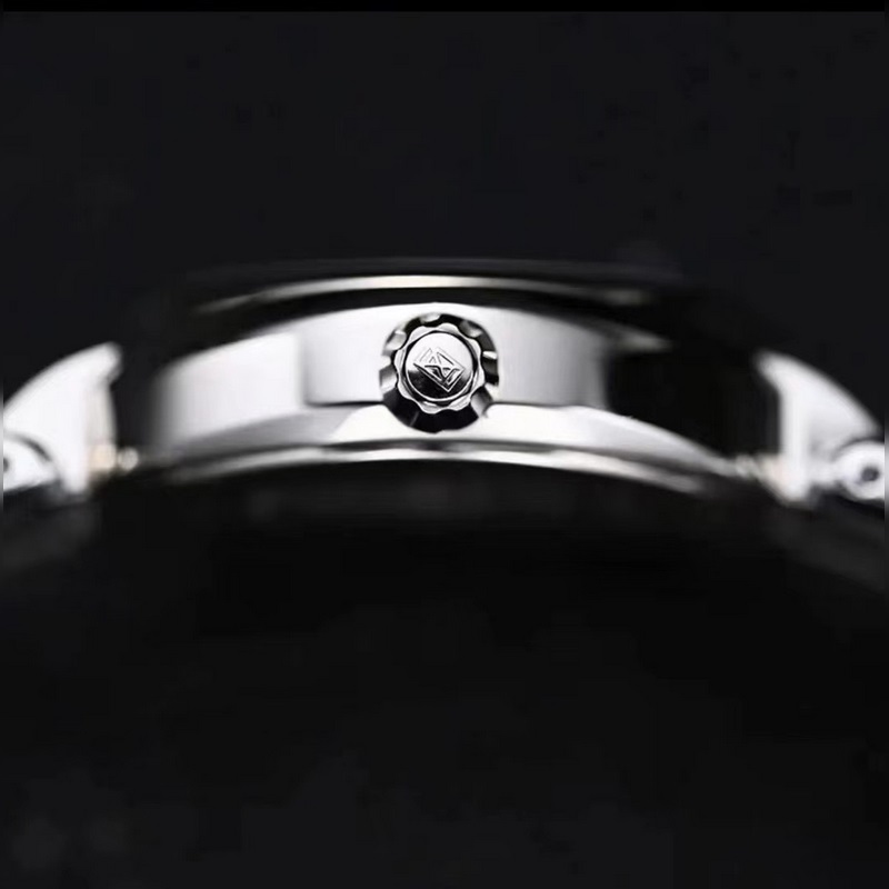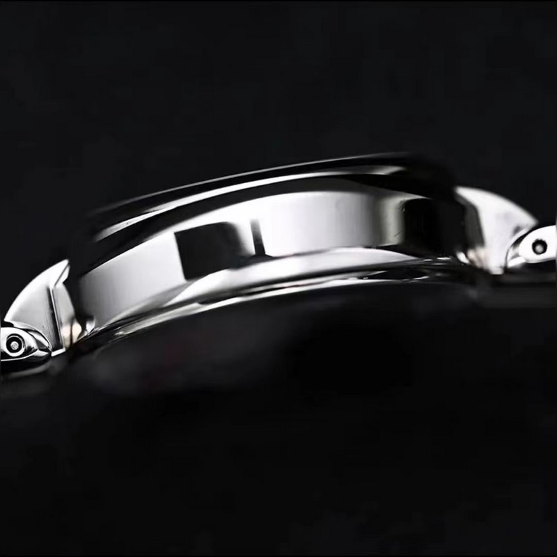 A hullámos acélszíj jól érzi magát és illeszkedik a kézhez, a fénye pedig árad. Az óragyártó minden szíjszakaszt gondosan polírozott annak érdekében, hogy a csillogása és alakja hibátlan és összhangban legyen az eredetivel.