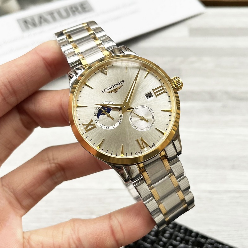 Longines kétkezes félkialakítású férfi óra replika valódi bőr szíjjal
