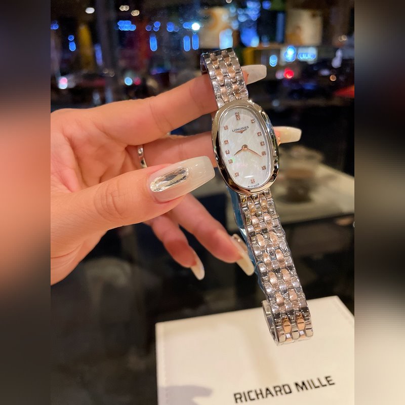 Longines – Új Symphonette Waltz sorozatú karóra import kvarc szerkezettel, gyöngyház számlappal, gyémántokkal vagy római számokkal kirakott, 23*32*9mm méretű.