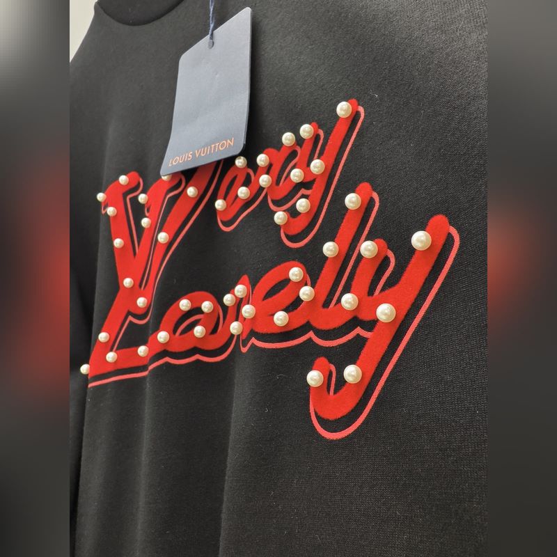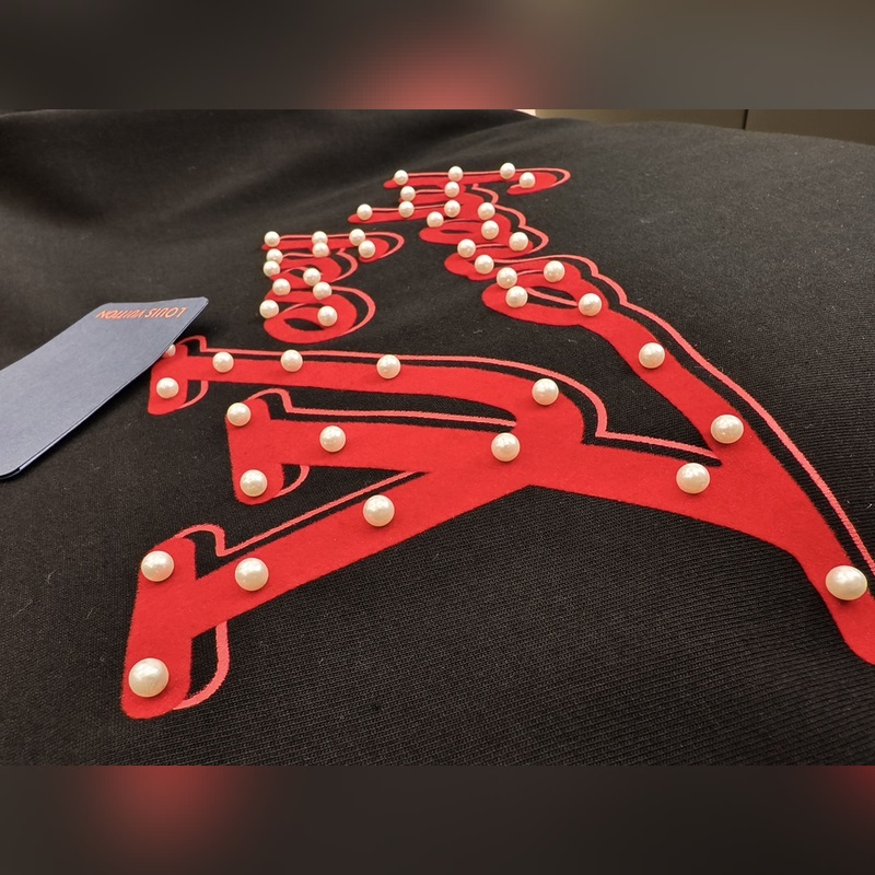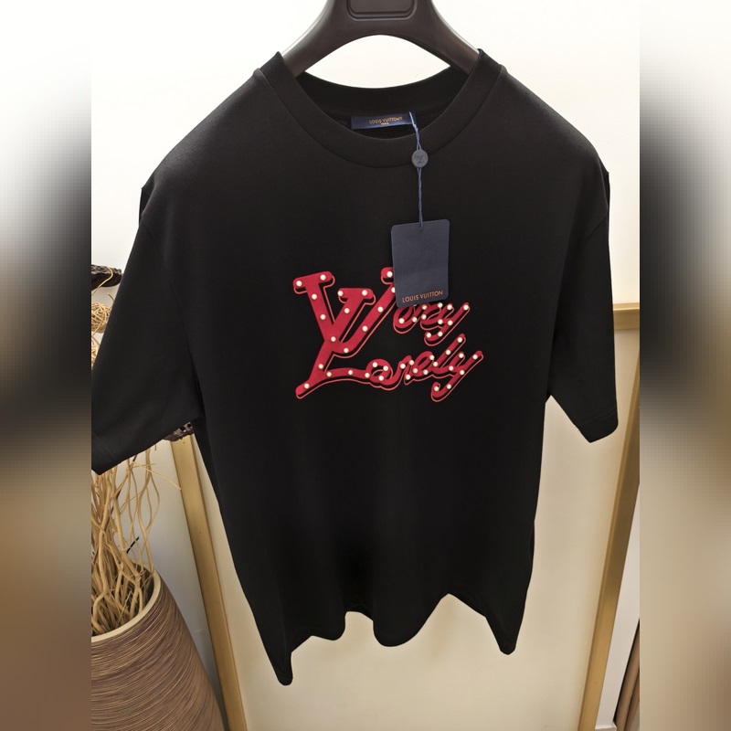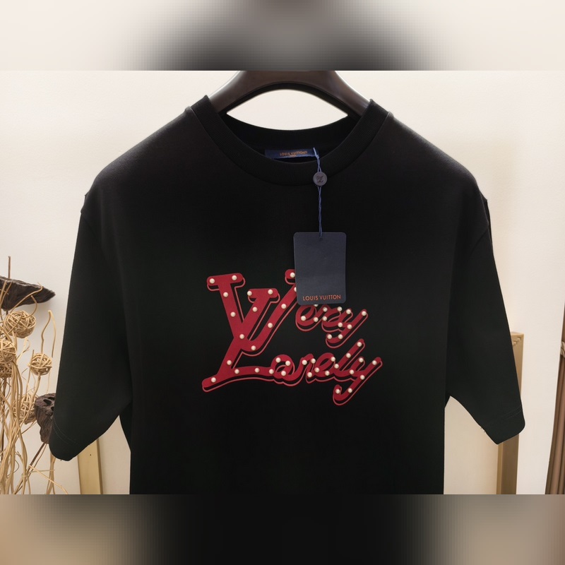 1V Louis Kezdőlap Flocked Pearl márkanyelv Fél ujjú póló Nehézsúlyú pamut tükör márkacímke a hátán