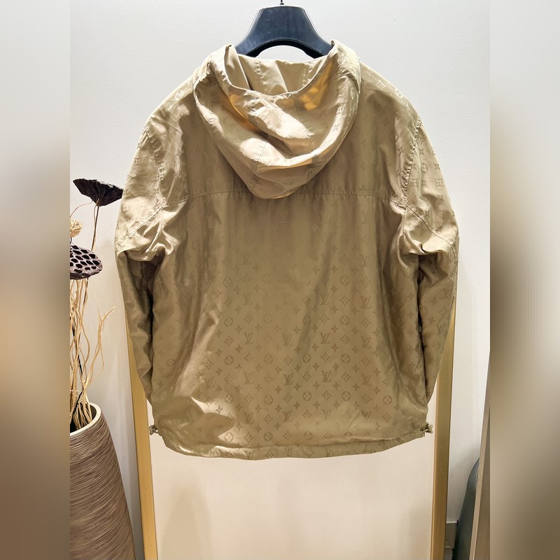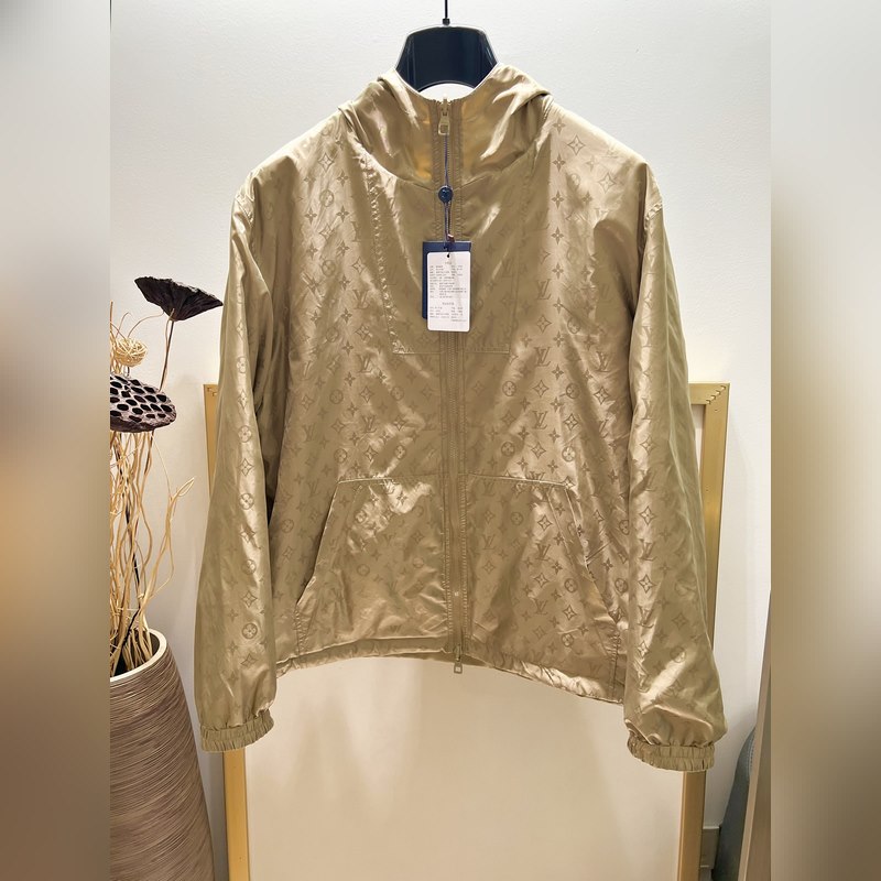 1V Louis 2024FW kora őszi MONOGRAM Nylon Kétoldalas kapucnis széldzseki Széldzseki Ez a széldzseki sima matt oldala kampókkal és tűvel a bal mellkason. Fordítsa meg, hogy felfedje a teljes szélességű monogramos jacquard mintát. A vízlepergető technológiájú szövetek könnyen megbirkóznak az időjárás változásaival. Mosási mód: Számos hardvertartozékot tartalmaz, és a száraz tisztításra és a közepes hőmérsékletű vasalásra korlátozódik.
