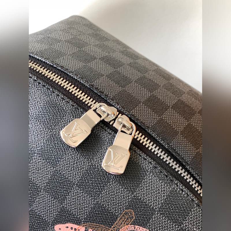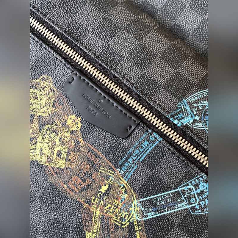 Ez a Discovery hátizsák Damier Graphite vászonból készült, és útlevélbélyegző stílusban ábrázolja a vadon élő állatokat, elmesélve a zsiráfok, elefántok és tigrisek vándorlási történetét. A csapat élén álló tigris a Tigris 2023-as holdújéve előtt tiszteleg. Méretek: 37 x 40 x 20 cm