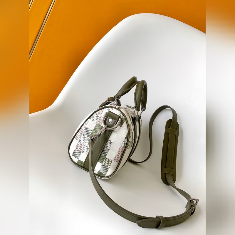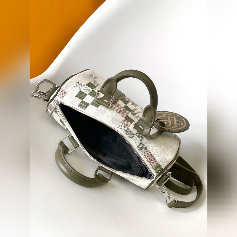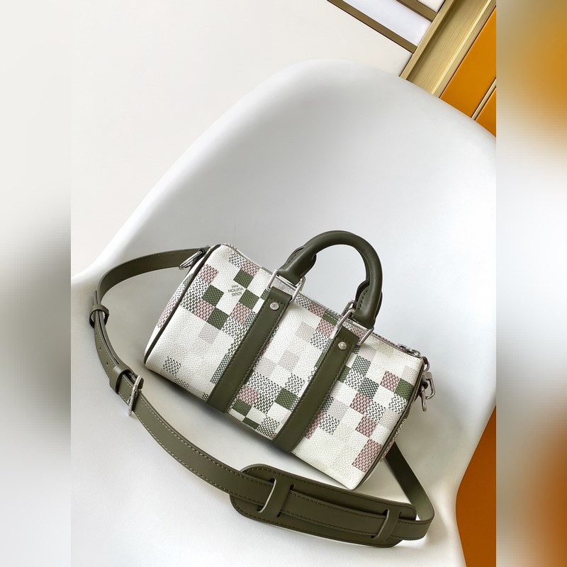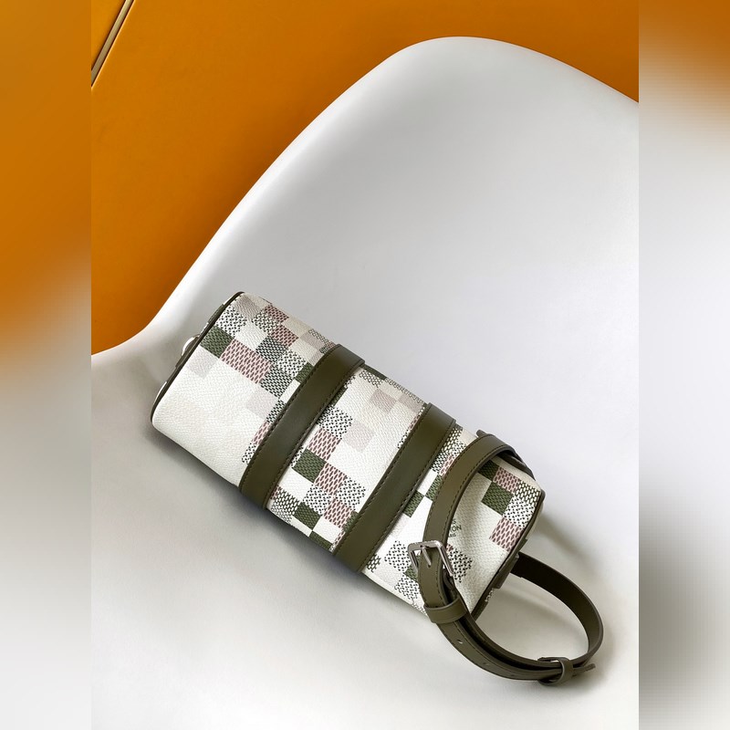 Dinamikus chip Top eredeti M00105 színátmenetes párnatáska Ez a Keepall 25 kézitáska Monogram Eclipse Reverse vászonból készült, amely a Louis Vuitton klasszikus mintájának elegáns újraértelmezését mutatja. A megerősített pántok és a bőr névtábla a Keepall sorozat ikonikus elemeit folytatják, a cipzáras záródás pedig lehetővé teszi a személyes tárgyak biztonságos szállítását. Méretek 25,0 x 15,0 x 11,0 cm (hossz x magasság x szélesség)