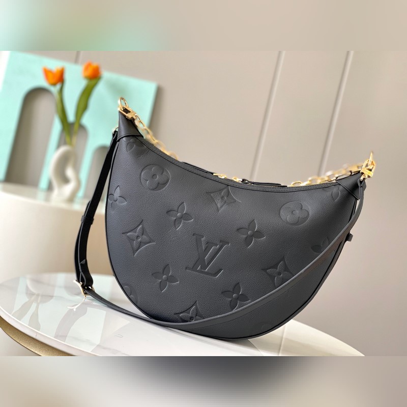 Csúcsminőségű eredeti, 46725 Ez a Loo Hobo kézitáska puha Monogram Emreinte marhabőrbőrből készült, hogy divatos félholdas konfigurációt hozzon létre, amely illeszkedik a test alakjához, és bőséges teret biztosít a városi utazások legjobb választásához. A levehető cipzáras zseb önmagában is használható, lánccal vagy állítható vállpánttal, hogy további hordási módokat fedezzen fel. 38 x 26 x 10 cm (hossz x magasság x szélesség) Monogram Emreinte dombornyomott szemcsés marhabőr
