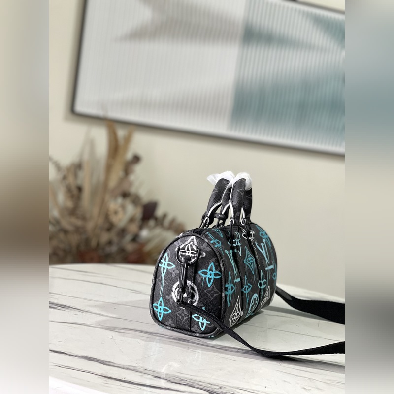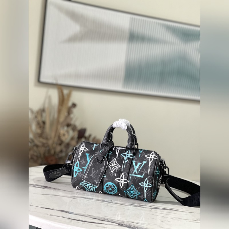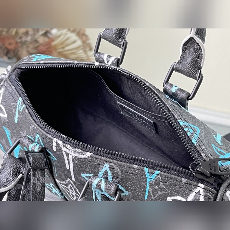 Stílus: M21399 Ez a 25-ös vászonból készült táska spray-festett Monogram mintájával street art stílust sugároz. A kompakt kialakítás könnyű városi mobilitást tesz lehetővé, az oldalsó pántok és a bőr névcímke pedig az utazótáska ikonikus elemeit folytatják. Méretek: 25 x 15 x 11 cm