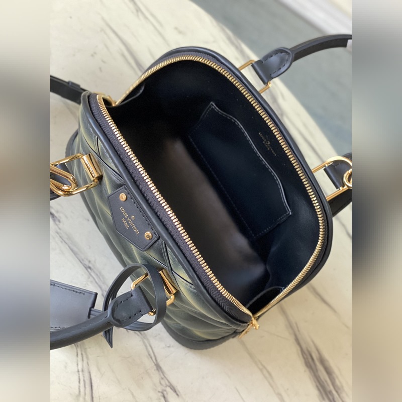 A felső eredeti M23666 fekete színátmenetes Nicolas Ghesquiere borszíneket fröccsent a bőrönd klasszikus gyémántmintájára, hogy megtervezze ezt a színes Alma BB kézitáskát. A báránybőrből készült világos színvilág a füstös tónusokat ötvözi, a Borromeo palota pompás belső terére emlékeztet, felső fogantyújával és levehető vállpántjával többféleképpen hordható. Mérete: 23,5 × 17,5 × 11,5 cm