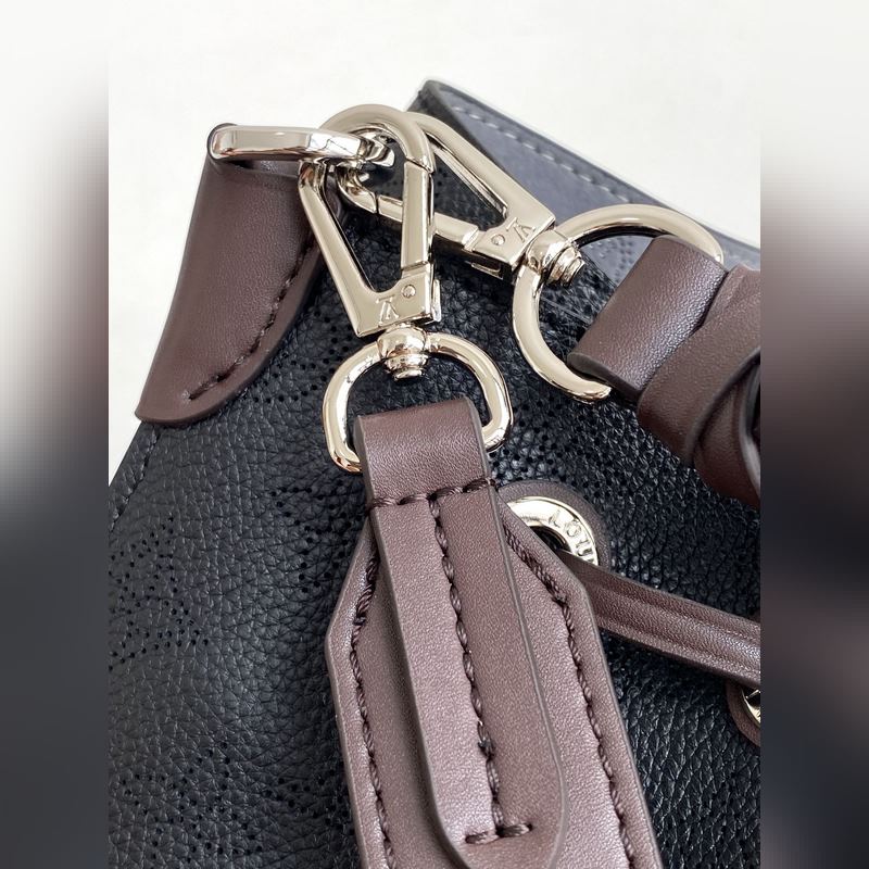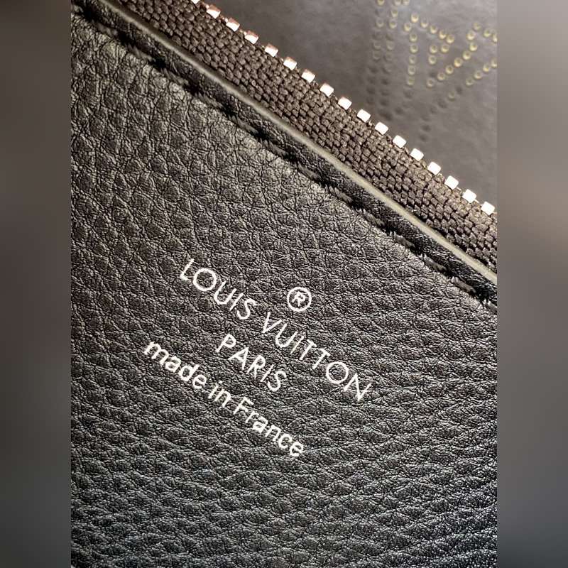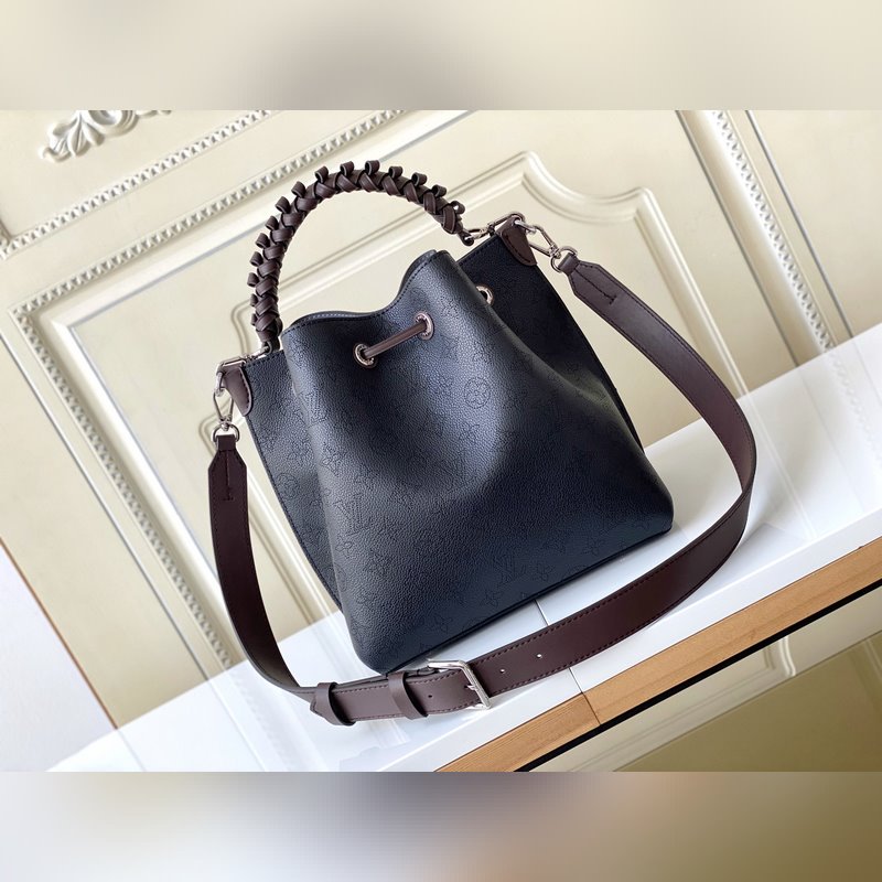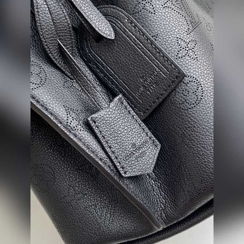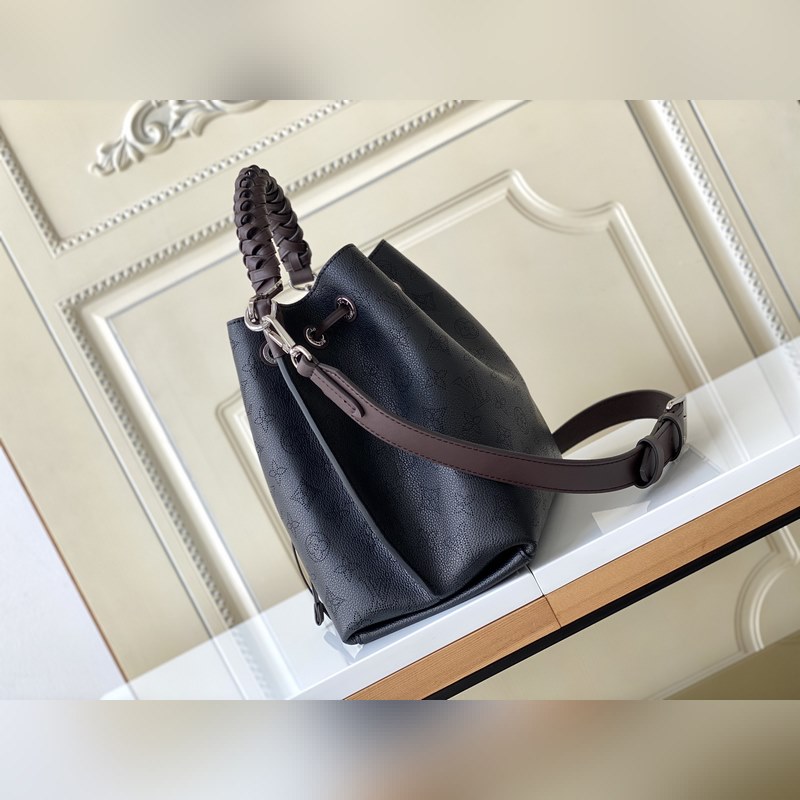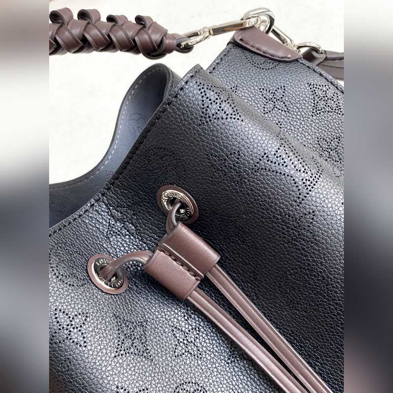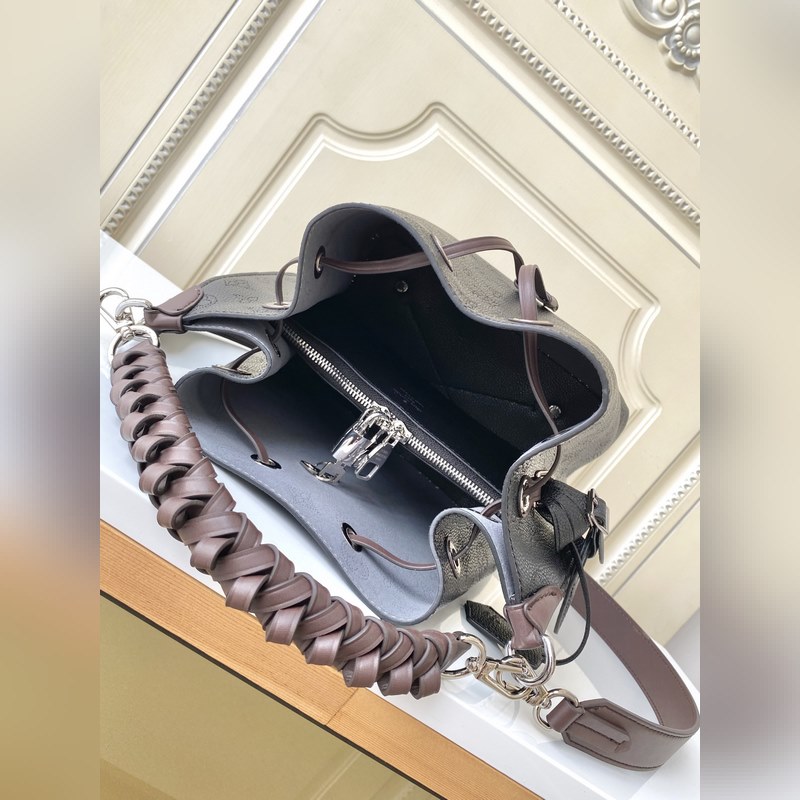 Haiyuan Külföldi Single Dushijia Shoot M55799 Sárgabarack 55800 Fekete 55801 Fehér Vert Lagon Muria Bucket Bag perforált borjúbőrből készült, a perforációk lassan körvonalazzák a Monogram mintát, márkanevekkel és kulcstartókkal díszítve. Fonott fogantyúkkal és hosszú bőr vállpántokkal. 25×25×20 cm 0418650