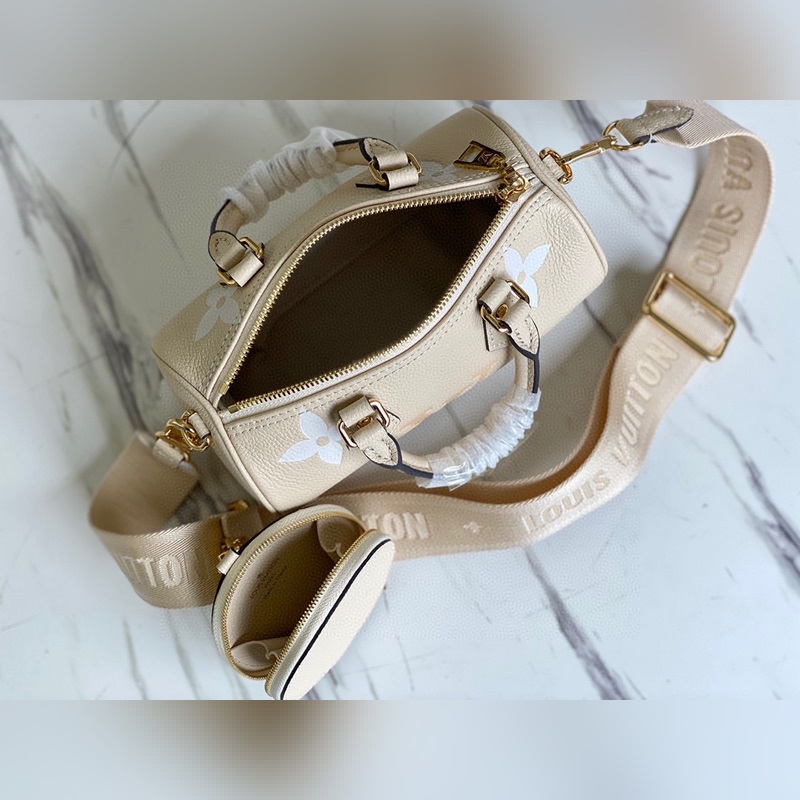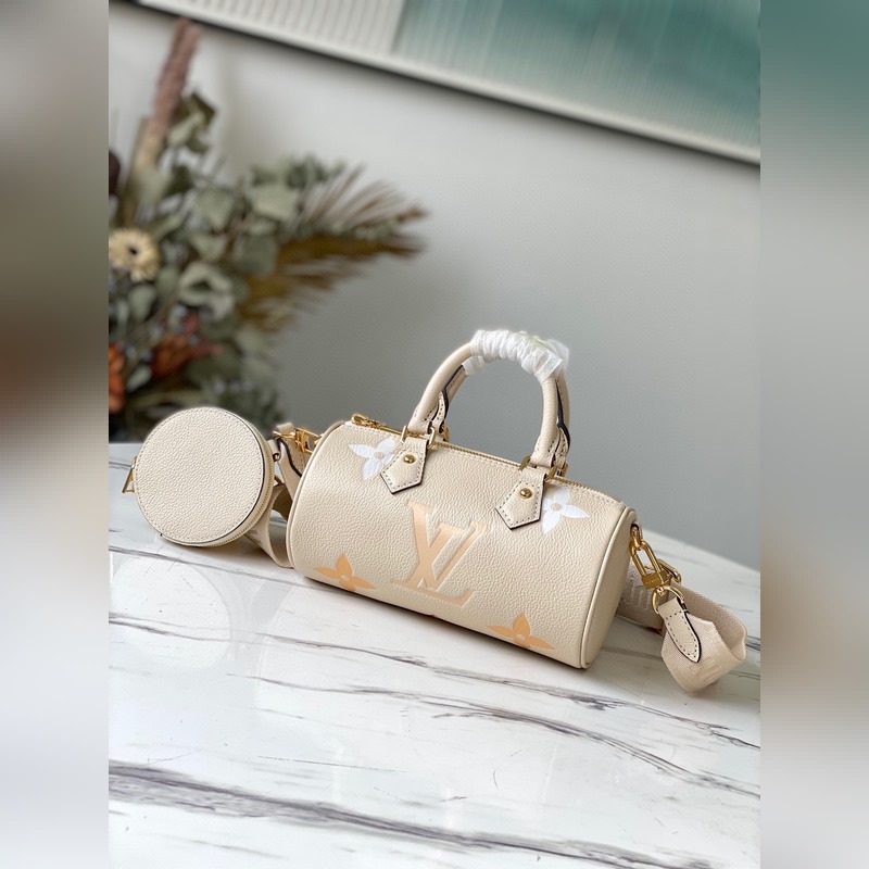 A klasszikus Papillon táska sziluettet miniatűr Monogram Empreinte bőrből, Monogram színátmenetes nyomattal alkották meg. A levehető jacquard vállpánt sportos érzetet kölcsönöz, míg a levehető, kerek érmezseb egy csipetnyi mókát kölcsönöz. Méretek: 20 x 10 x 10 cm