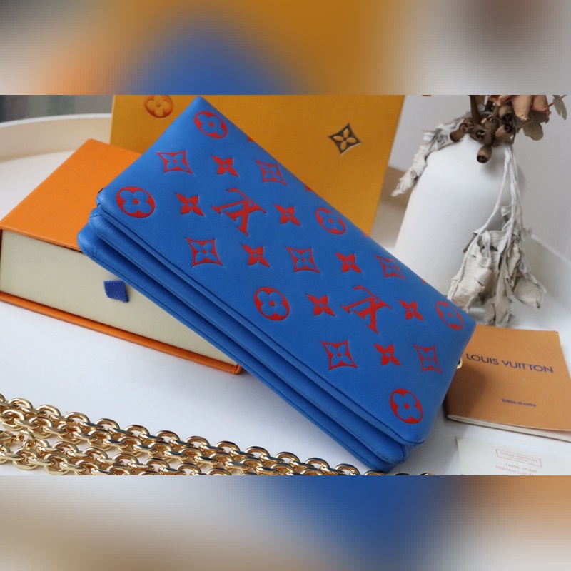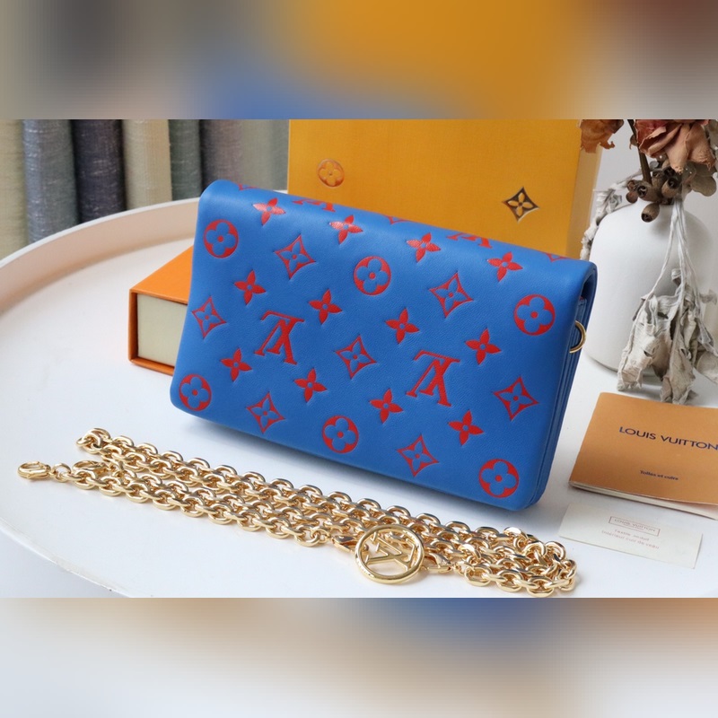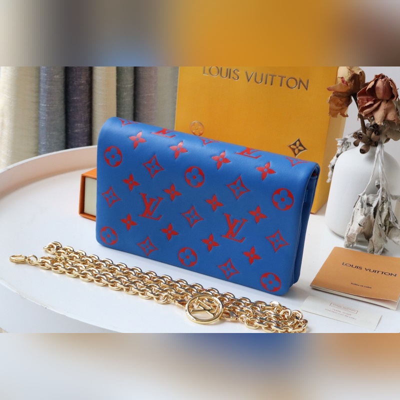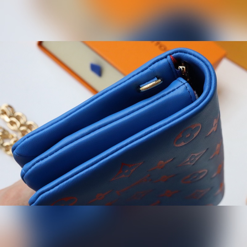 A Monogram dombornyomott báránybőr párnaszerű textúrát hoz létre. Az intelligens szerkezet magával is mozgatható. Louis Vuitton sármákkal díszített levehető láncával kuplung- vagy deréktáskaként is használható.