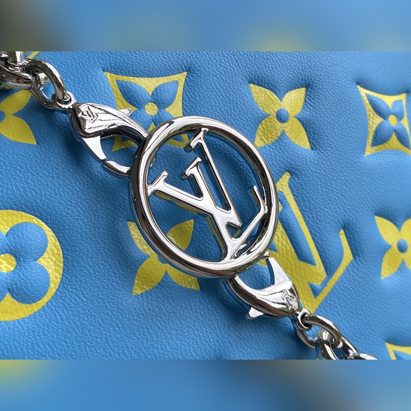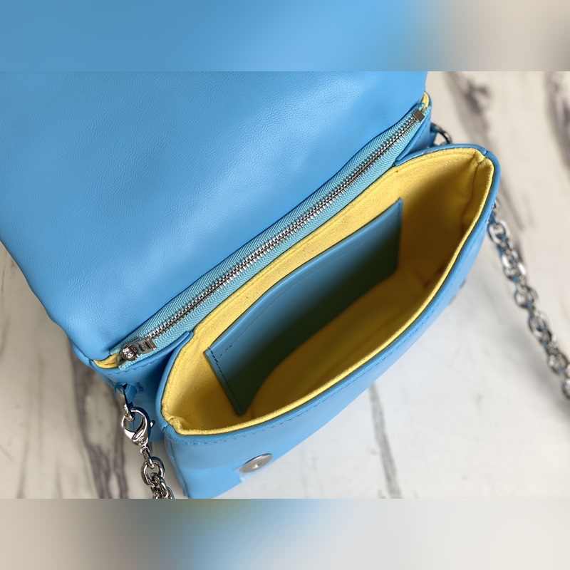 Monogram dombornyomott báránybőrből készült, puha textúrájú, mint egy párna. Az okos forma lehetővé teszi, hogy mozogj vele. Díszekkel díszített, levehető lánccal, kuplungként vagy deréktáskaként is használható. Méretek: 20 x 14 x 8 cm