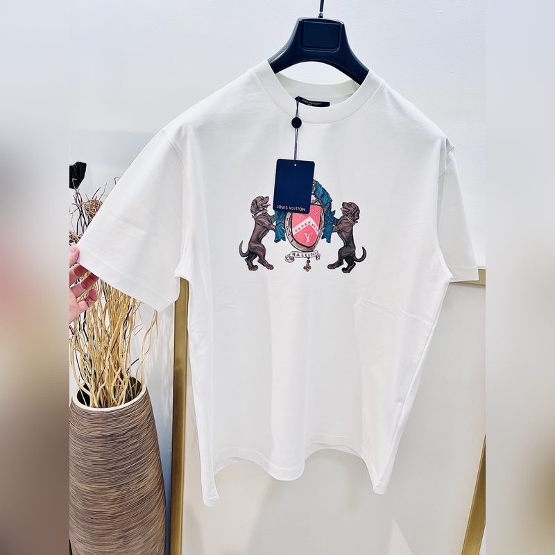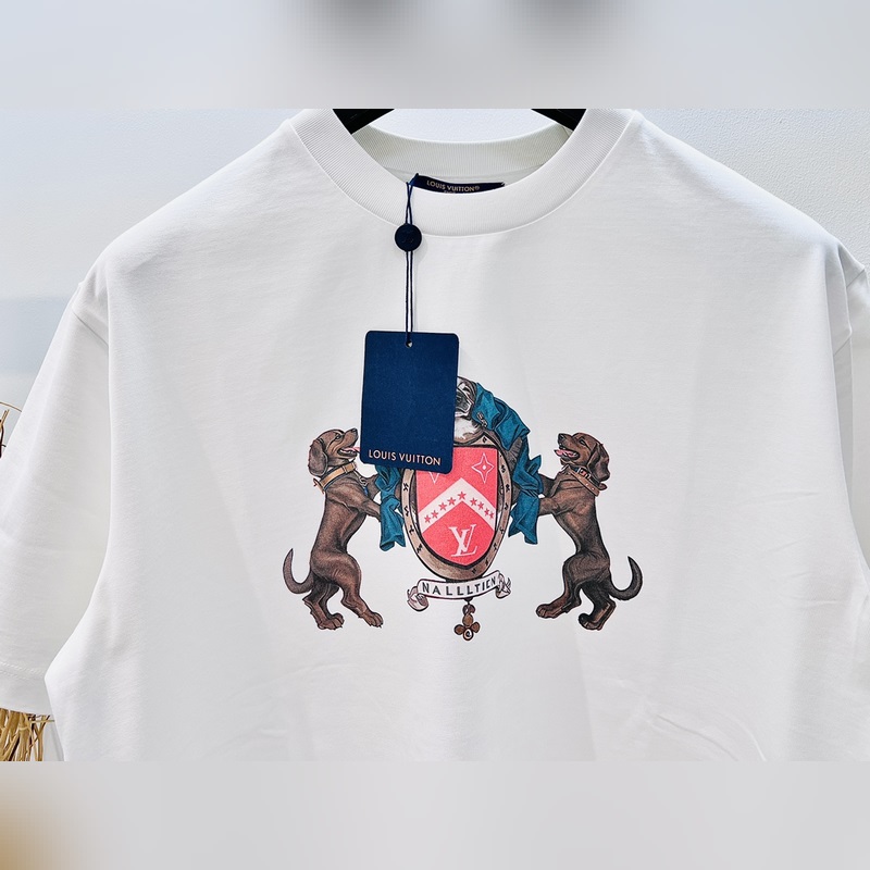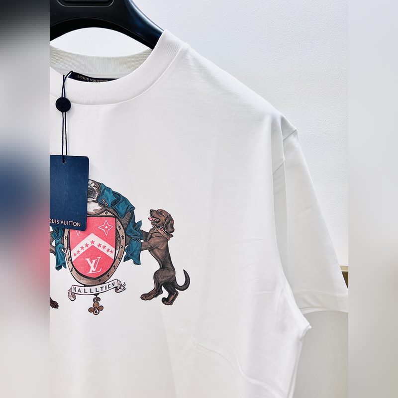 LV Louis Legújabb Rottweiler közvetlen nyomtatású rövid ujjú póló · Hátoldali kép Címke · Bordás gallér · 100% pamut