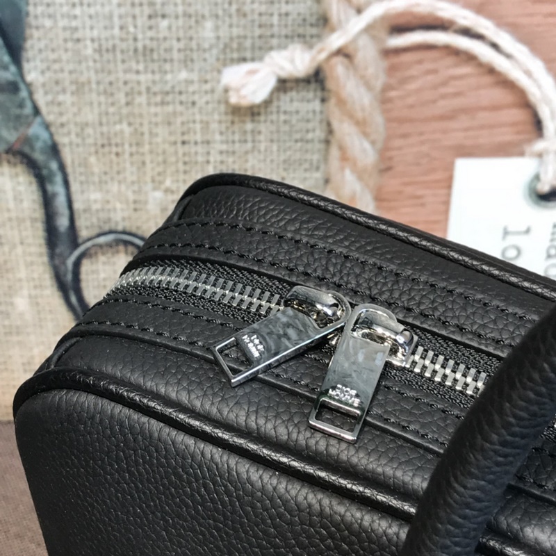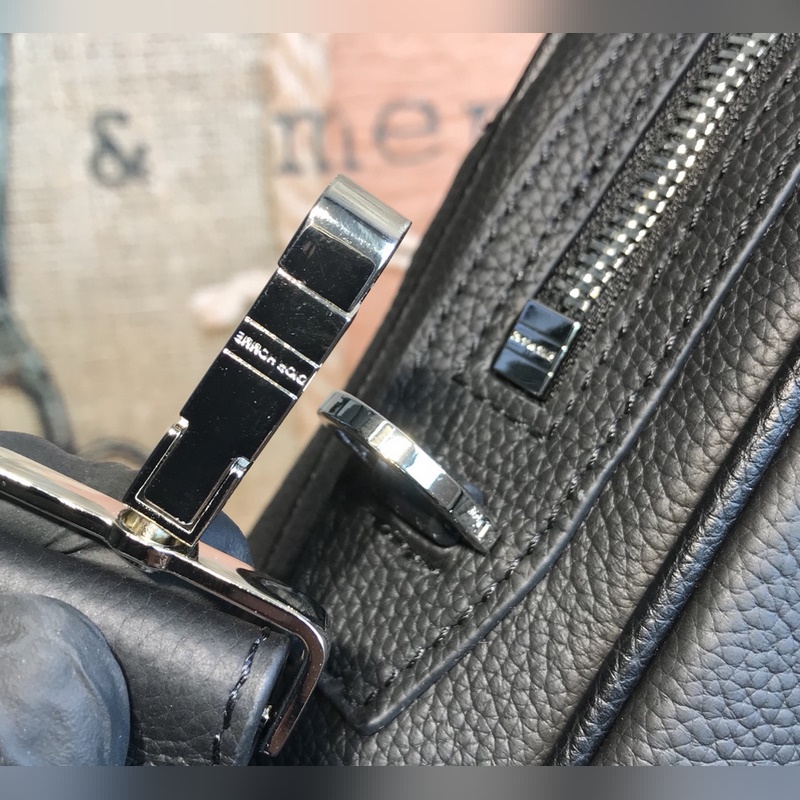 Luxus, fekete szemcsés marhabőrből készült, kellemes tapintású és puha. Állítható teljes bőr vállpánt, fém logó elöl, cipzáros zseb a hátul nyitható a bőrönd kocsi behelyezéséhez, kényelmes utazáshoz, újszerű stílus, egyedi báj, sokoldalú és lezser, jóképű az utcán, mérete: 38,28,7 cm