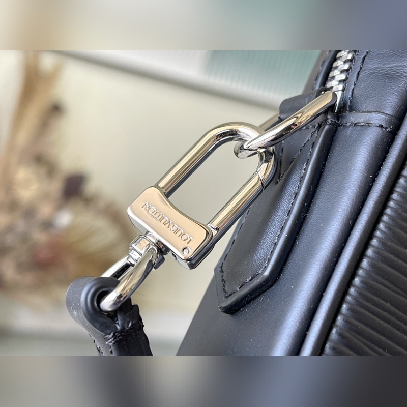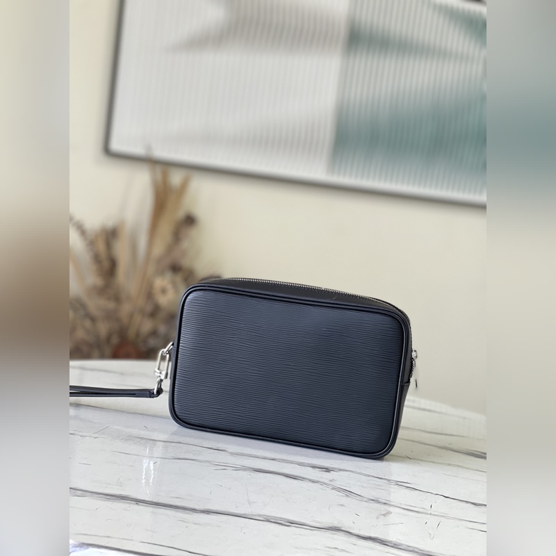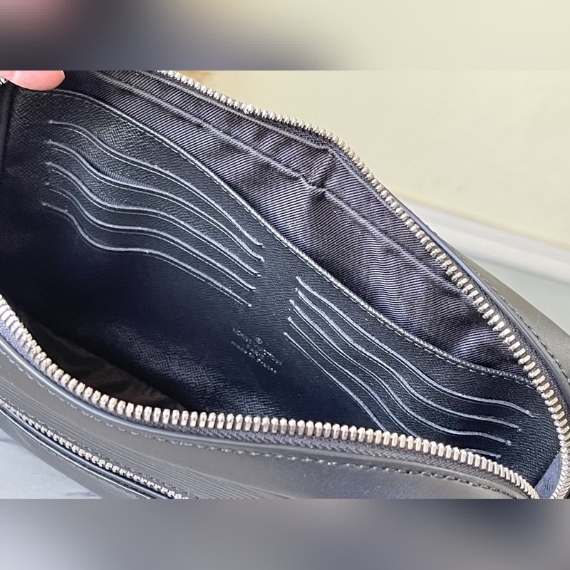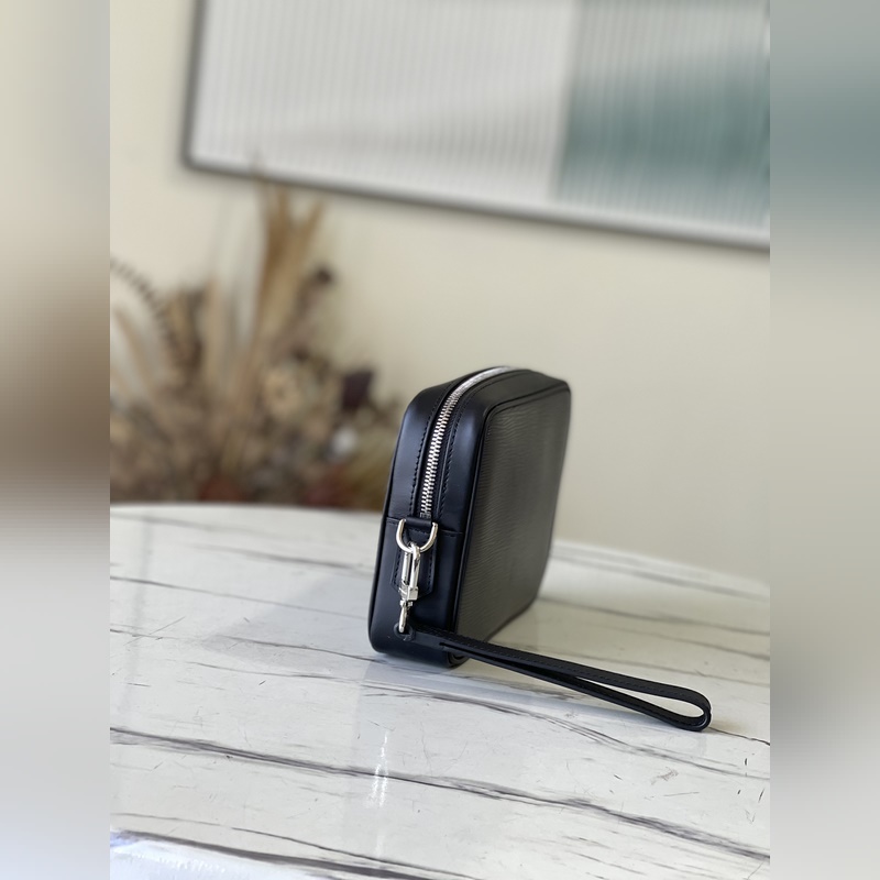 A csúcsminőségű eredeti, hullámos fekete M51726 Pochette Kasai kuplung finom Taga bőrből készült, hogy kompakt formát hozzon létre, az alsó sarkokat betűkkel jelölve. Rendelkezik rajta egy patch zseb és egy kártyanyílás, hogy ügyes és rendezett legyen. A bőr csuklópánt többféle hordási módot tesz lehetővé. Méretek 25 x 15,5 x 6,5 cm (hossz x magasság x szélesség)