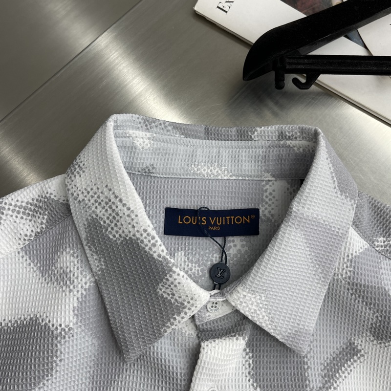 Az LV 24ss új tavaszi és nyári rövid ujjú ing méhsejt szerkezetű pamutkeverék, a rugalmas szegély pedig modern stílust alkot. Az 1 V Maamundi minta kiemeli a sorozat témáját, az álcázó hatású világtérkép és a márka logója pedig okosan pixeles megjelenést kölcsönöz