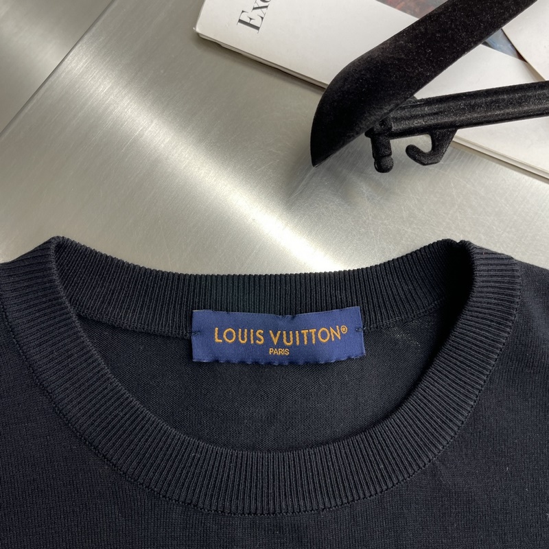 Az LV 24ss új tavaszi-nyári, rövid ujjú, bő nyakú pulóver pamutból készült, kontrasztos jacquard logóval. A Marque L. Vuitton déosée finoman díszített a mellkason, a mandzsetta körül pedig 1 V-os betűk borítják az egyszerű megjelenést. Egyedi bájt varázsolhat a mindennapi viseletbe