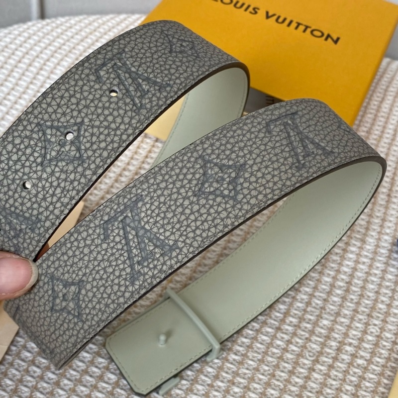 Az új LV Shape kétoldalas öv új togo mosott borjúbőrből készült, nagy kék logómintával, dombornyomással és szitanyomással, valamint matt LV Shape csattal párosítva. Az elegáns borjúbőr megfordítható és stílusos megjelenéssel viselhető, alkalmas formális és hétköznapi viseletre is