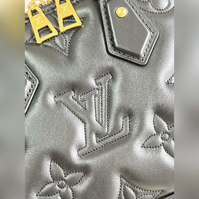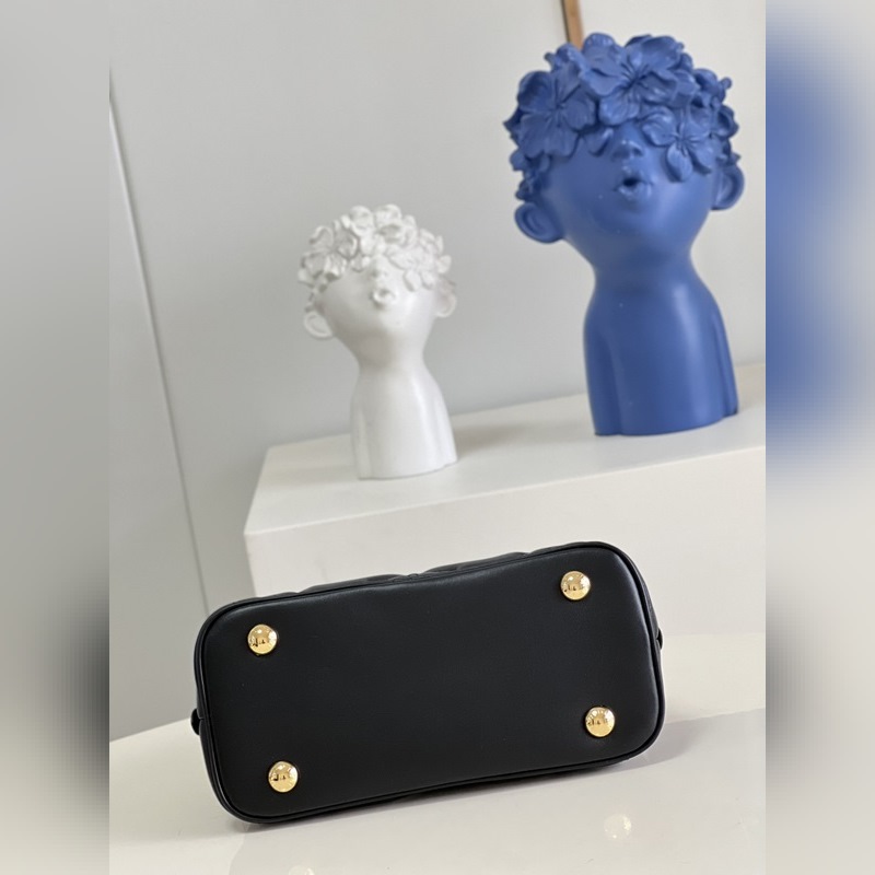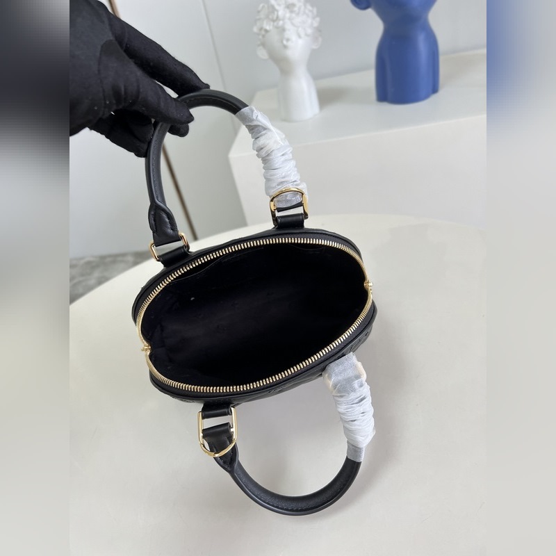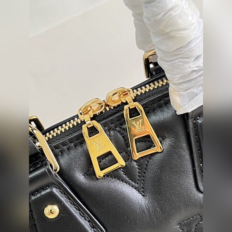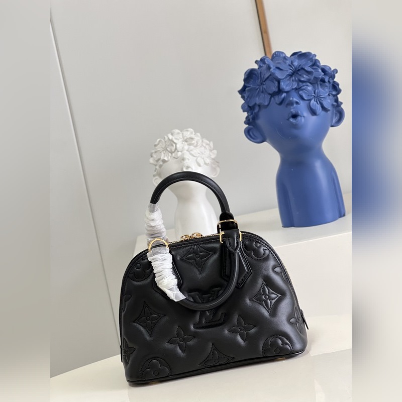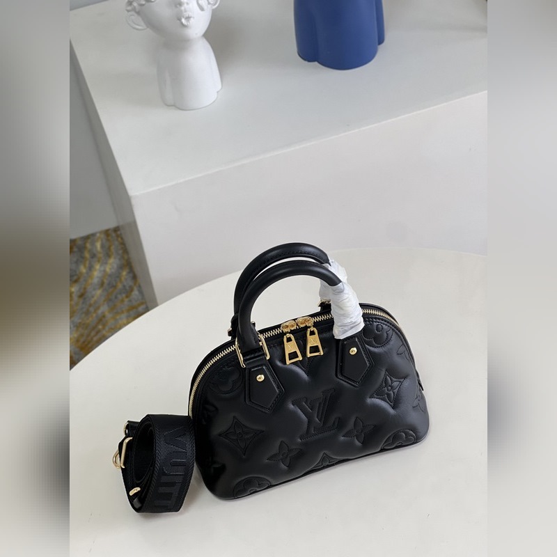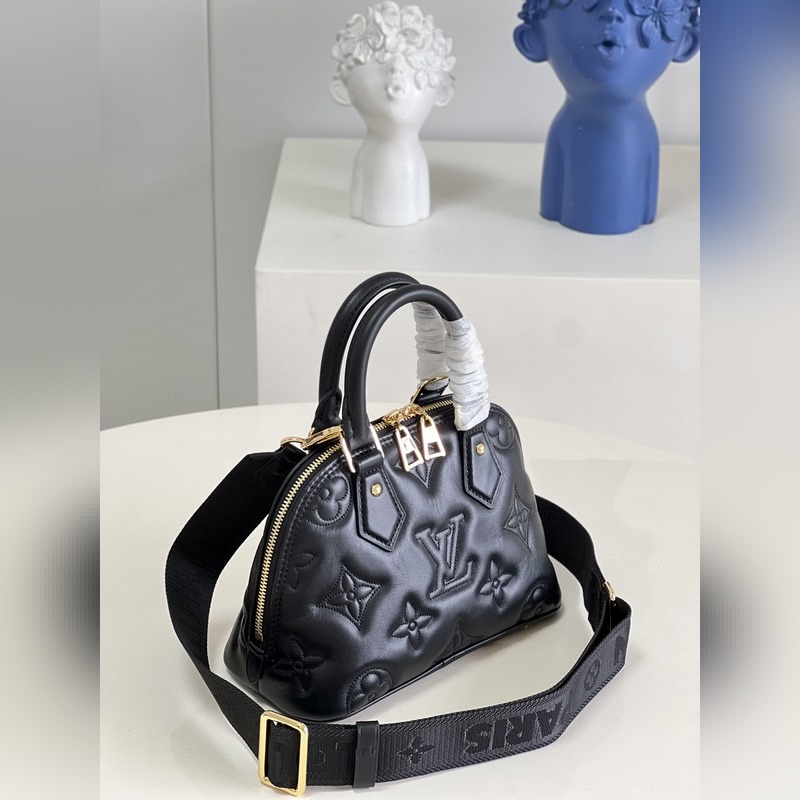 Ez az Alma BB kézitáska az 1930-as évek Art Deco stílusának esszenciáját örökli. Ez egy terjedelmes steppelt marhabőr hímzett Monogram minta, hengerelt bőr fogantyúkkal és levehető és állítható vállpánttal, mely tetszés szerint hordozható kézben vagy keresztben.