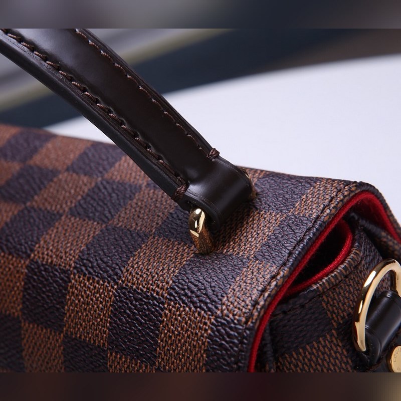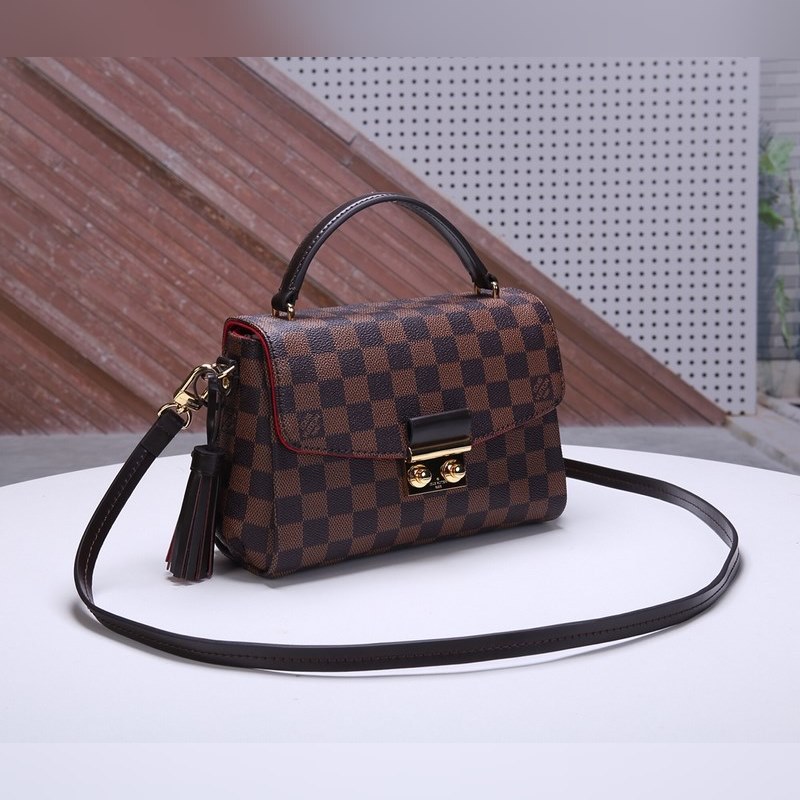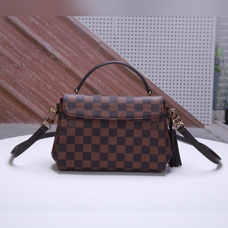 Ez a kicsi és kényelmes Croisette kézitáska kitűnő részletekkel és teljes funkciókkal rendelkezik, elegendő ahhoz, hogy új kedvencévé váljon. A levehető bojtdísz egy kis humort kölcsönöz az elegáns dizájnnak. Rendkívül sokoldalú, kézben, vállon hordható vagy keresztben is hordható. A külső Damier Azur bevonatú vászonból készült, természetes marhabőr díszítéssel, szövet béléssel, füllel és csattal.