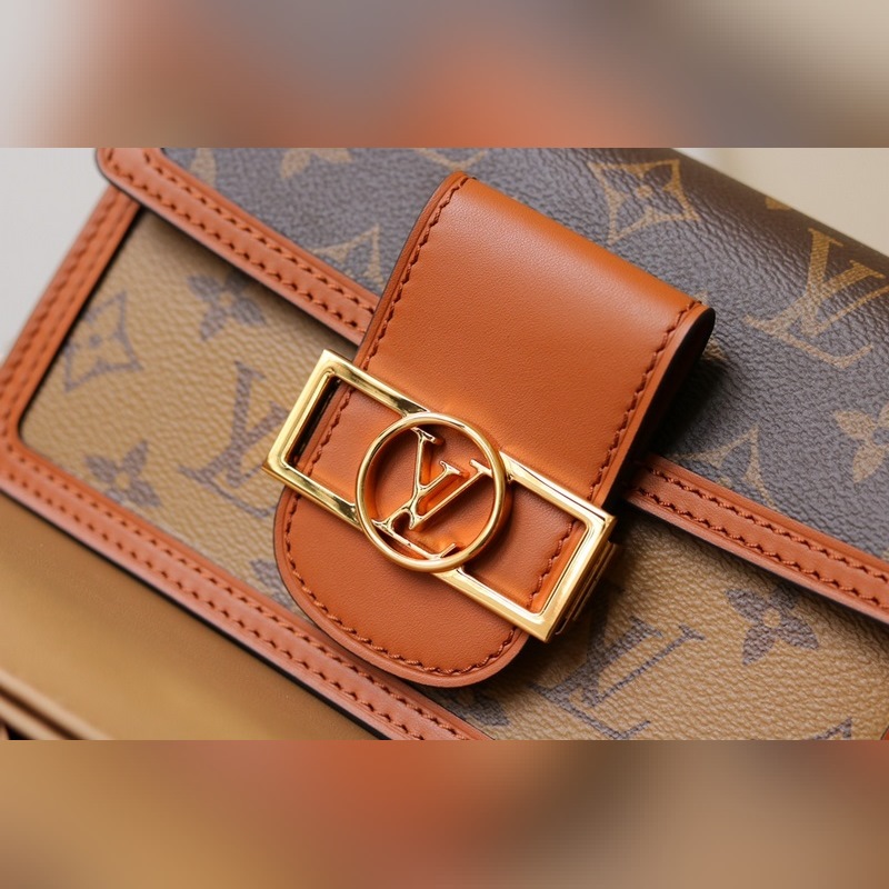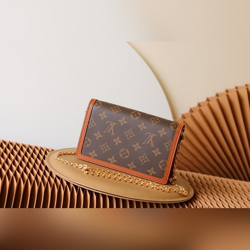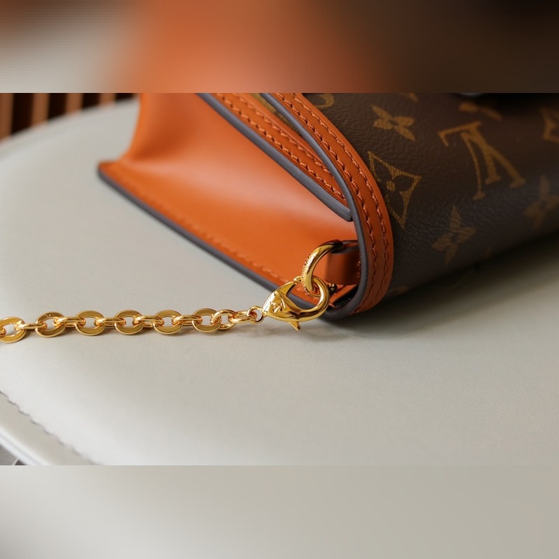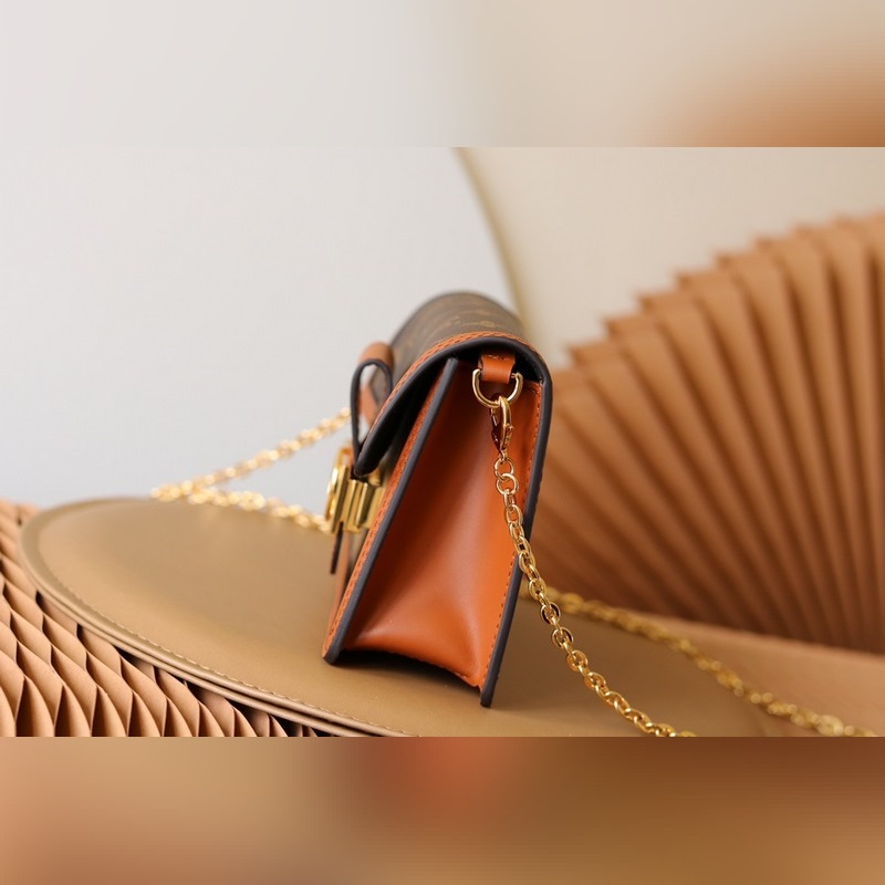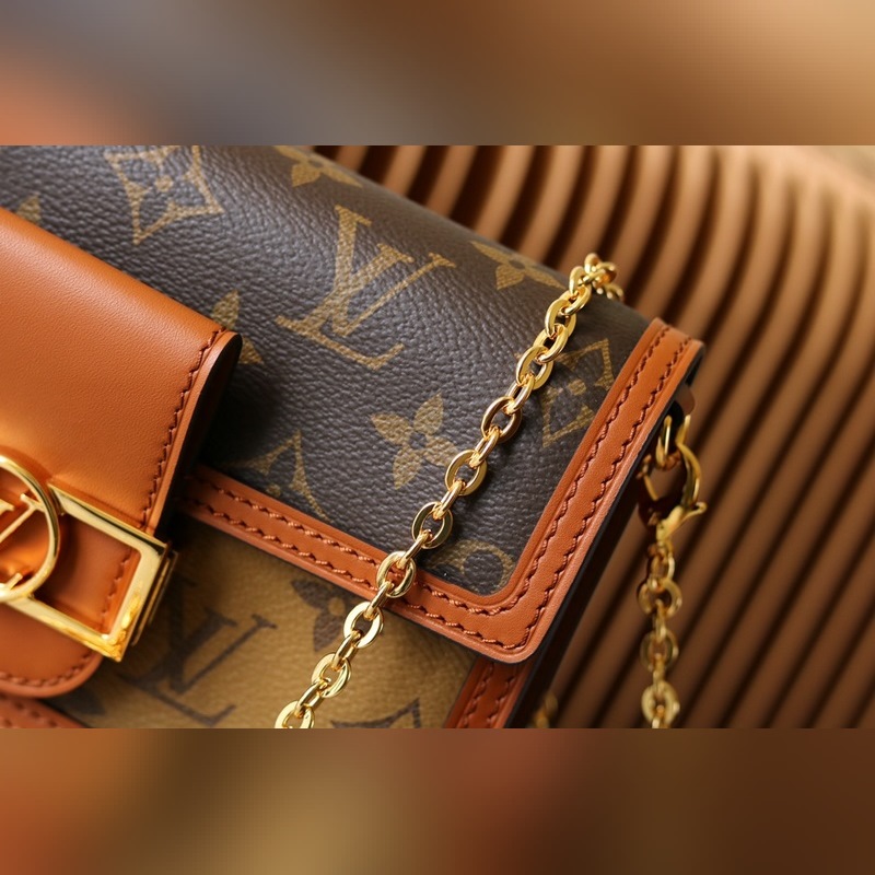 DAUPHINE LÁNCTASKA Ez a Dauphine lánctáska a Dauphine sorozat ikonikus elemeit egyesíti a Monogram és Monogram Reverse vászonokkal, újrateremtve a vintage megjelenést, a borjúbőr díszítést és az LV Circle horogot.