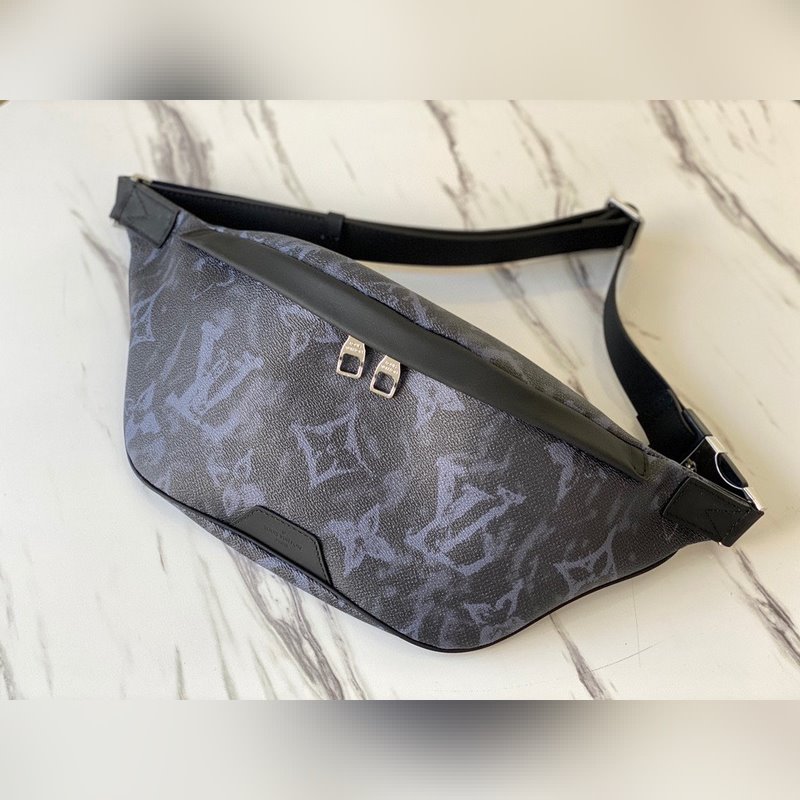 Virgil Abloh Monogram mintájának újraértelmezését mutatja be Pastel Noir vászonban, a retro stílus magától értetődő. Az elülső és a hátsó cipzáras zsebek kényelmesek az apróbb tárgyak tárolására. Az állítható öv segítségével a derekára kötheti, a vállán vagy a keresztben hordhatja.