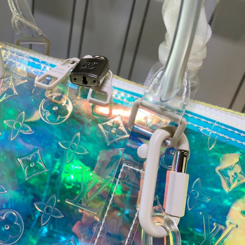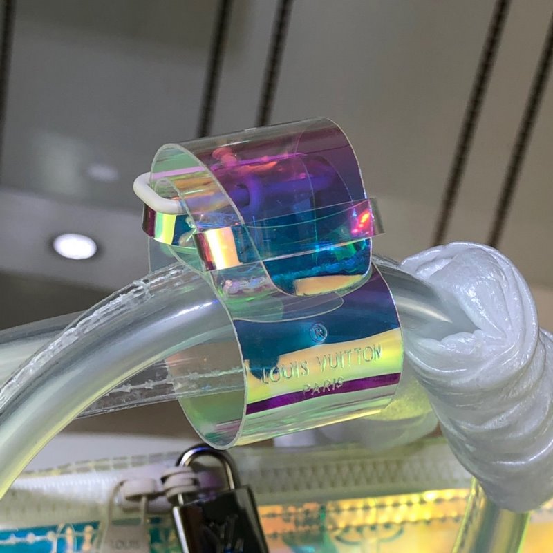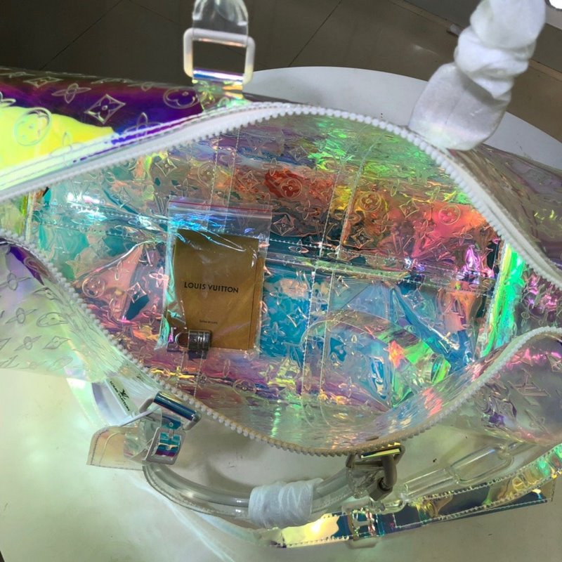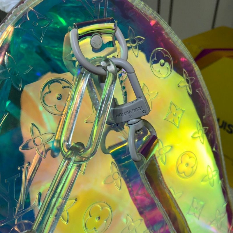 Ez a színes KEEPALL 50 utazótáska Virgil Ablohnak, a Louis Vuitton férfiruházat művészeti igazgatójának előremutató vízióját mutatja be: a személyes fiatalság és a Louis Vuitton klasszikusának ütközését és összefonódását. Monogram nyomott PVC-ből készült, nagy méretű dizájn, merész szivárvány színekkel, nagyon figyelemfelkeltő. A levehető vállpánt és a felső fogantyú sokféle hordozási módot biztosít. 50,0 x 29,0 x 23,0 cm (hossz x magasság x szélesség) Színes prizma Átlátszó Monogram nyomtatás PVCPVC szegély Fehér díszítés Felső fogantyú, kézi vagy kézi szállításra alkalmas Bőr fogantyú fix ujjú Dupla cipzárral zárható kivitel Bőrbe csomagolt lakat dísz Gyanta lánc Kivehető bőr vállpánt vállhoz vagy átlós szállító