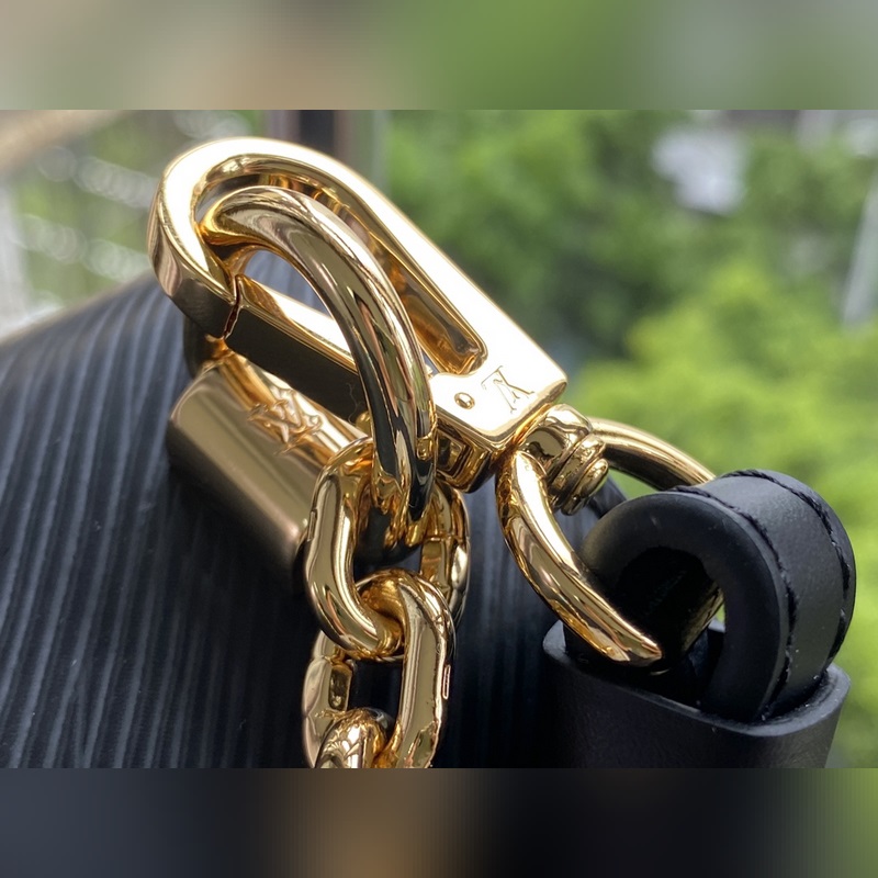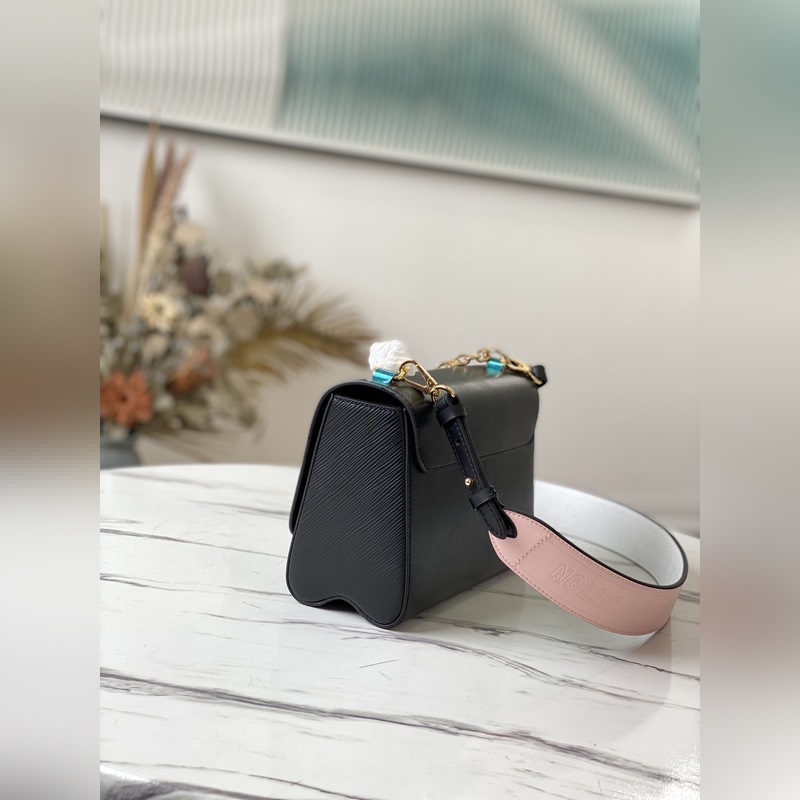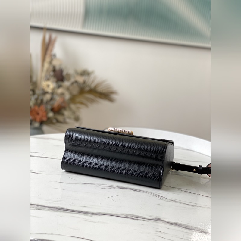 A klasszikus ist medium kézitáska ist twist zárját szövött bőrrészletek egészítik ki, a széles bőr vállpánt egyik oldalán pedig a márka logója van domborítva, míg a másik oldalon a mini Monogram dombornyomás látható. A láncfogantyú lehetővé teszi a kézben és a könyökben történő hordozást. Méretek: 23 x 17 x 9,5 cm
