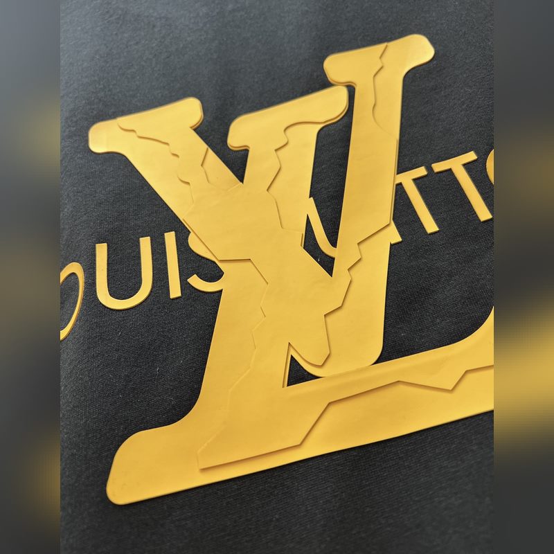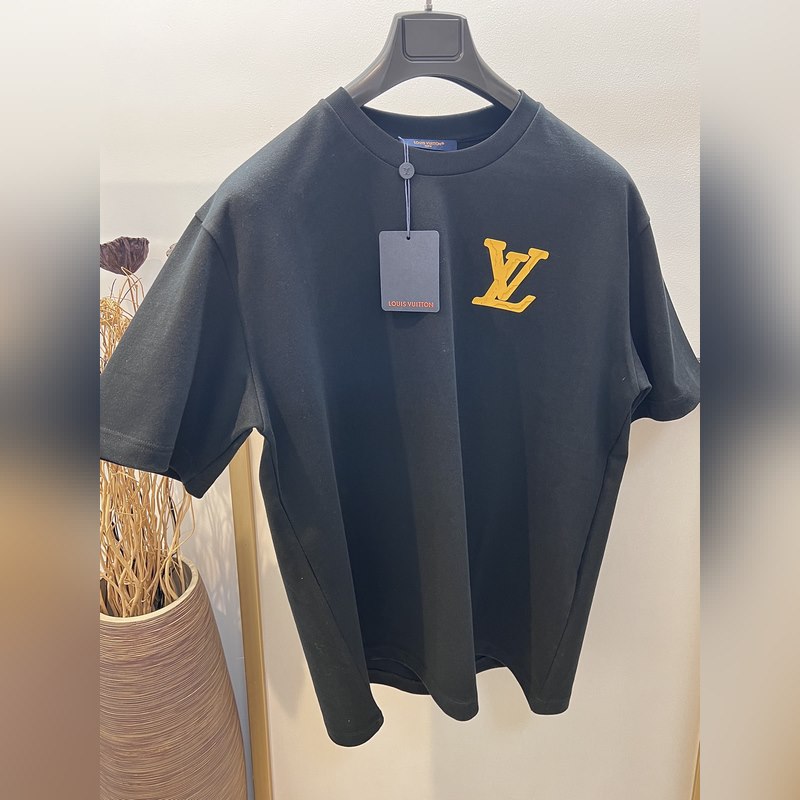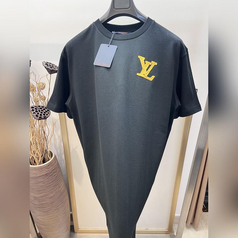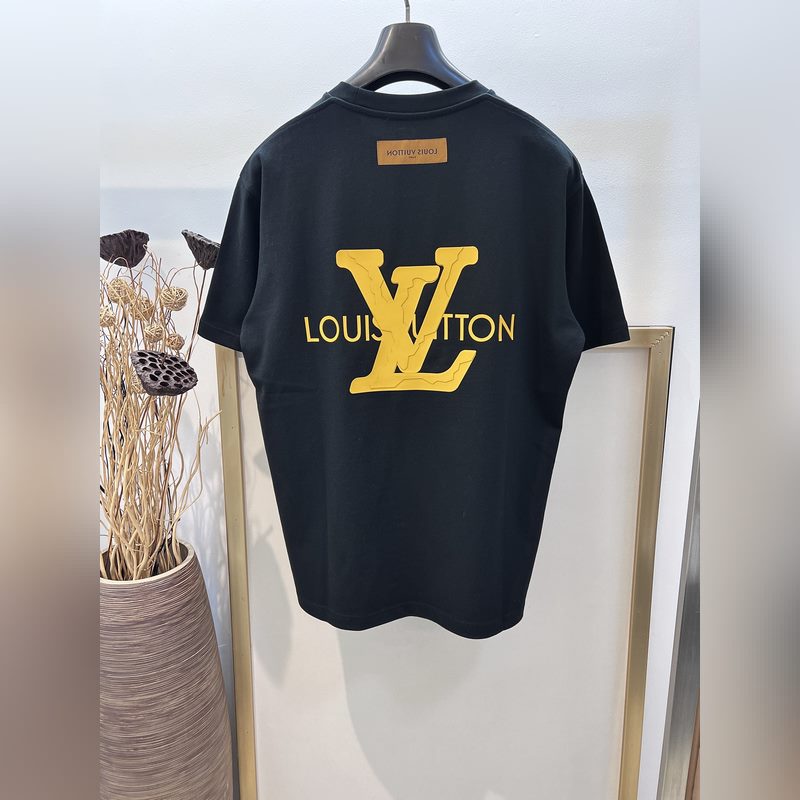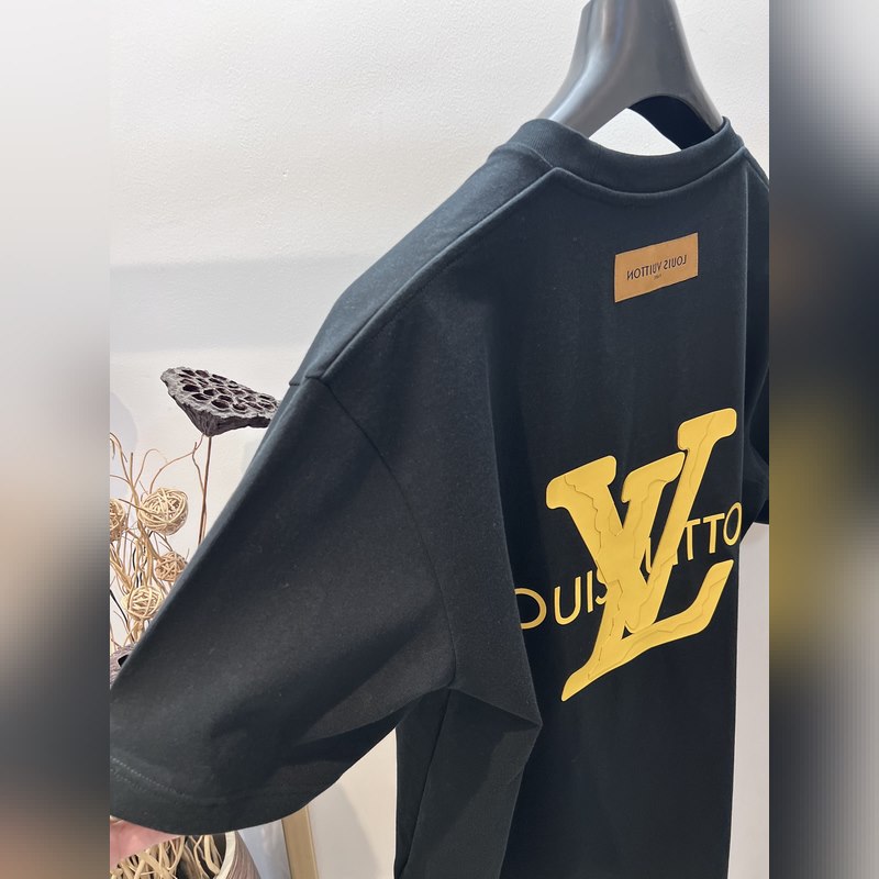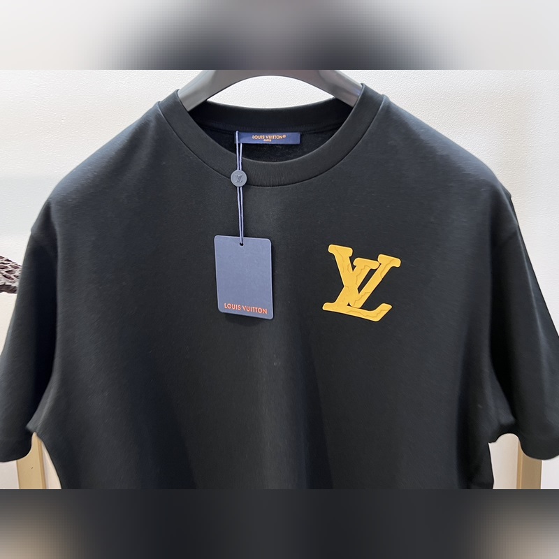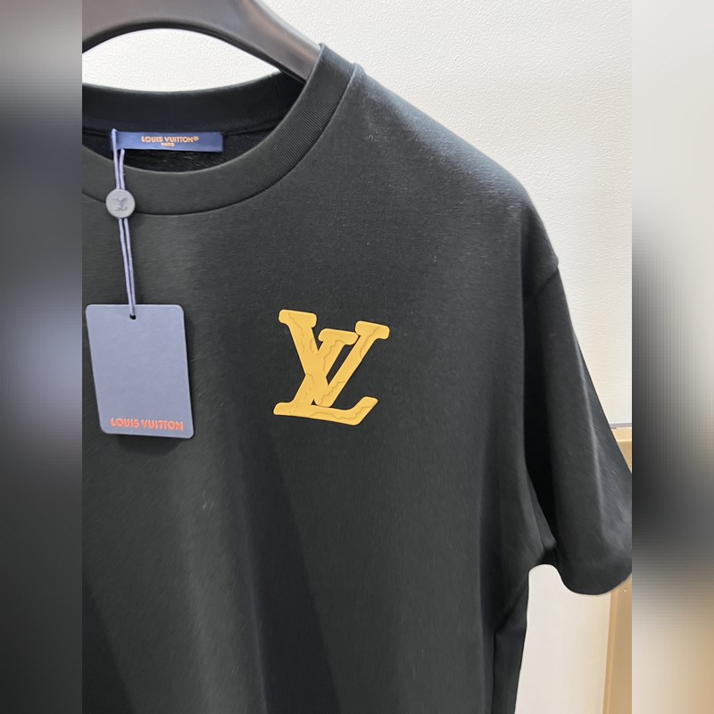 LV 2025FW 3D dombornyomott nehéz pamut fél ujjú póló dombornyomott elől és hátul / Pamut félujjú póló tükrös márkalogóval a hátán Ez a pamut póló lezser és sportos színvilágot sugároz, a mindennapi viselet szezonális színekkel. 100% pamut
