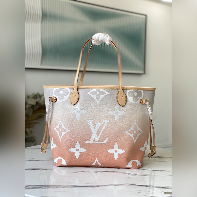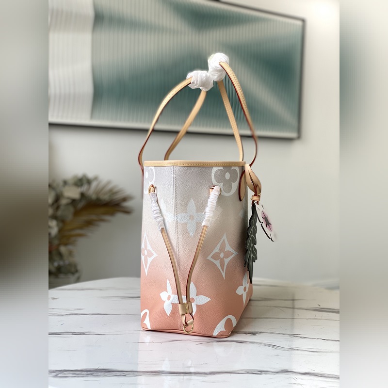 Ez a Neverfull Medium Tote Monogram Giant vászonra van festve, színátmenetes pasztell tónusokkal, és magában foglalja a bőr és a virágok nyári illatát. Az oldalsó hevederek az áramvonalas és a laza sziluett között váltanak, amikor behúzzák és elengedik őket, a vékony fogantyúk pedig vállon vagy könyökön hordozhatók. Levehető kuplung jár hozzá. Méretek: 31 x 28 x 14 cm