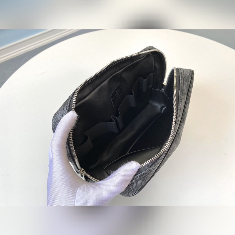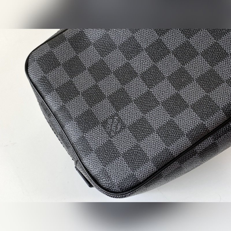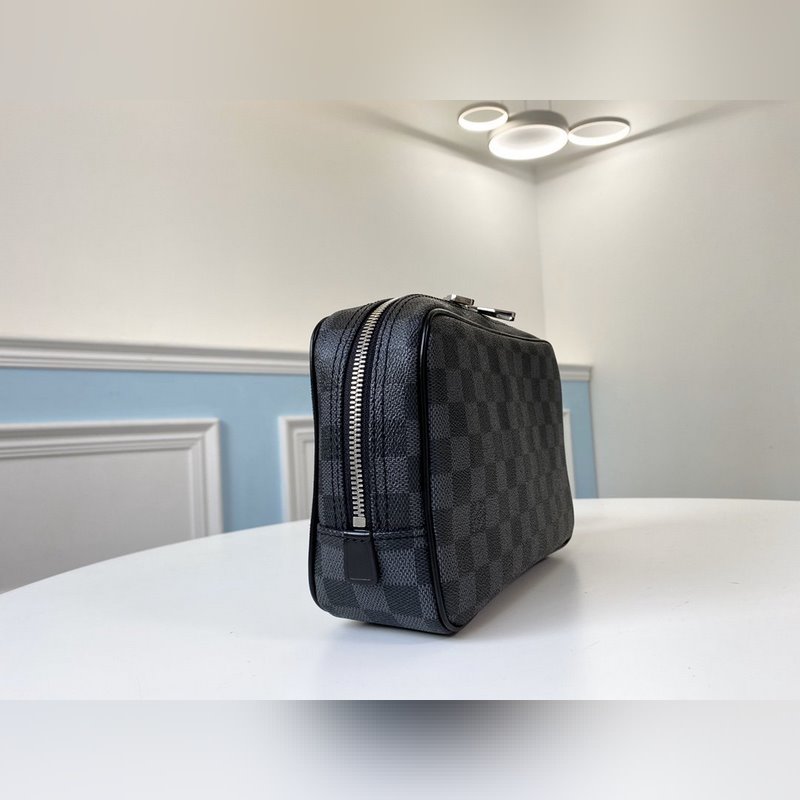 A mai utazók egy praktikus piperetáskát szeretnének, amely könnyen belehelyezhető egy bőröndbe egy rövid utazáshoz. A nagy piperetáska egy ilyen táska, amely erős Damier Graphite vászonból készült.
