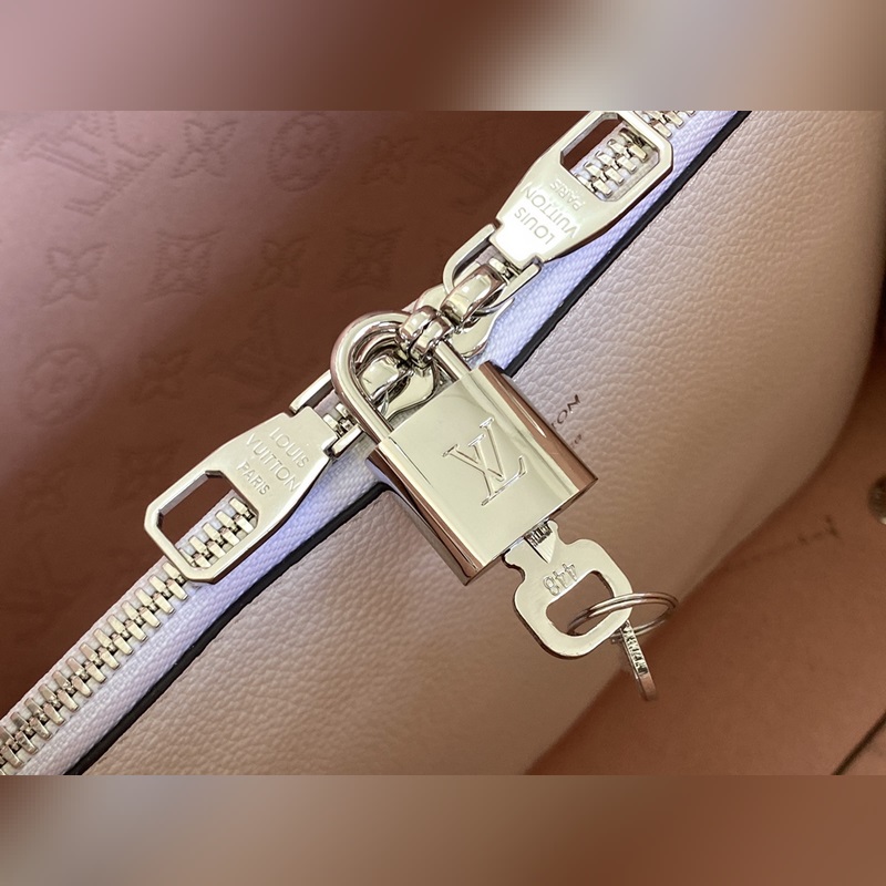 A pasztell tónusok fokozatos elmélyülése és a Monogram perforációk vonzzák a tekintetet, fonott fogantyúkkal és hosszú bőr vállpánttal. Méretek: 25 x 25 x 20 cm