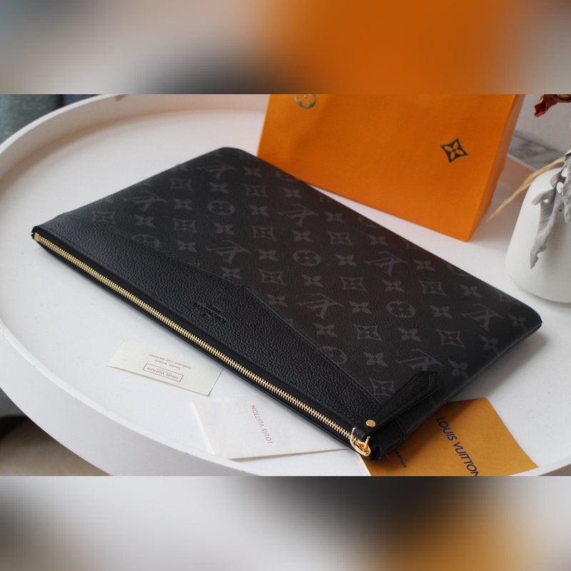Ez a kézitáska éles kontrasztot és nagyon egyedi modern stílust mutat ikonikus vászonjával és finom szemcsés bőrével. Hatalmas kapacitással és több funkcióval rendelkezik, és könnyen tárolhatja a napi szükségleteket. Hordható egyedül vagy egy nagy táskába is. Méretek: 29,5 x 21,0 x 1,0 cm