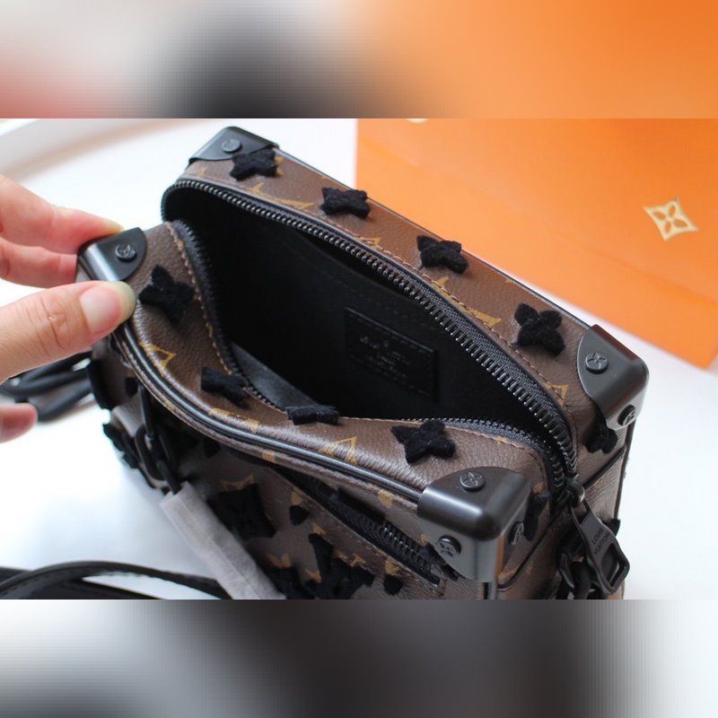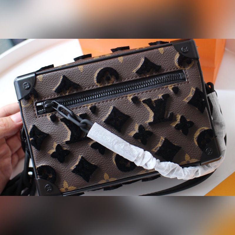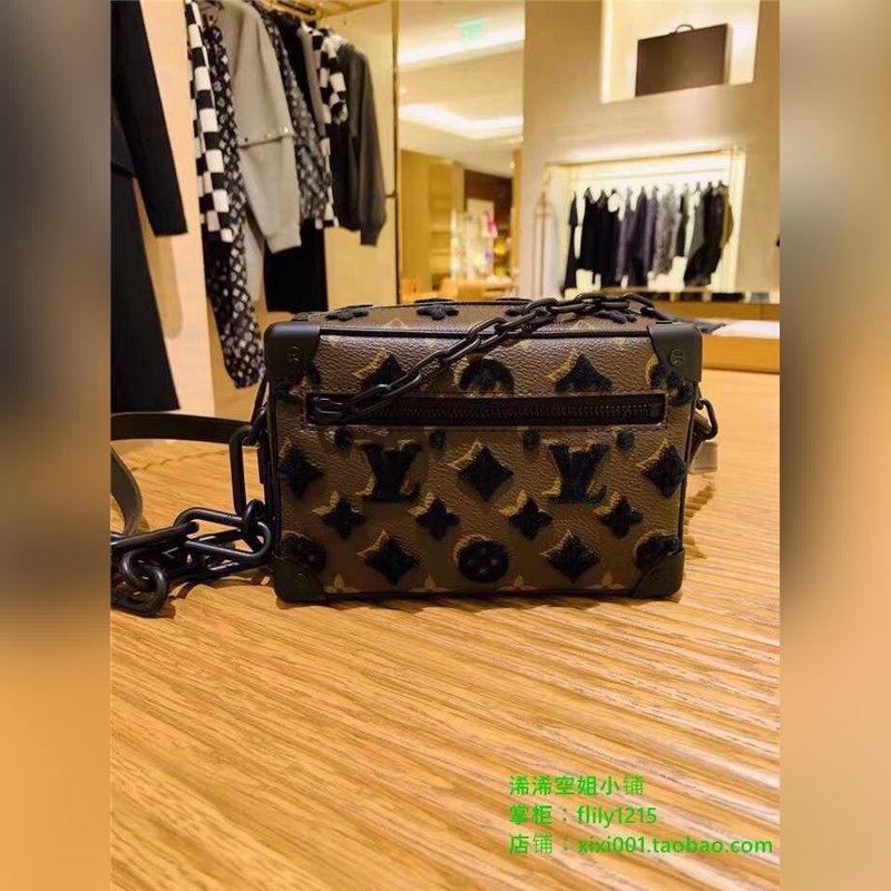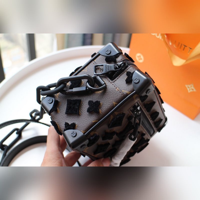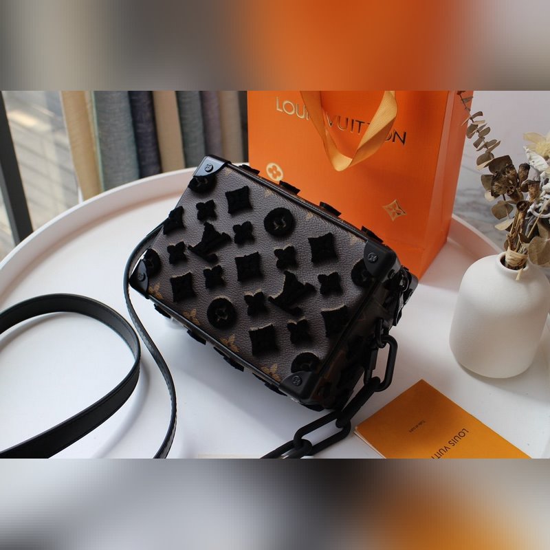Az ikonikus Monogram nyomat kontrasztos gyantalánccal párosul, kifinomult formájával. Ez a bájos kézitáska éles szélekkel és elegáns konnotációkkal rendelkezik.