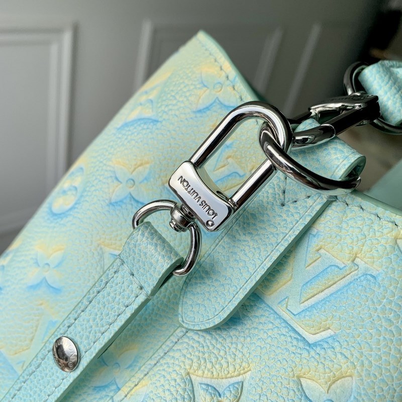 Ez a NeoNoé BB vödörtáska Monogram Empreinte bőrből készült, és háromlépcsős spray-festési technológiát használ az irizáló színek bemutatására, így a Summer Stardust sorozat színkoncepcióját mutatja be. A húzózsinóros zárás és a bepattanógombos belső zseb funkcionalitást ad, a levehető fogantyú és vállpánt pedig többféle hordozási módot tesz lehetővé.